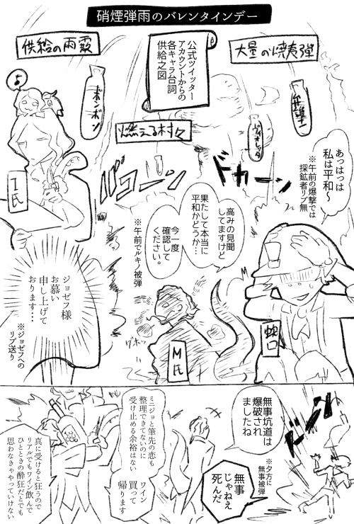 shitihoda☆quiet followSPOILER【第五人格というゲームをやって】10分類ネタバレは…ただの予防線なので期待するほどのネタバレはないよ。精々推し論発表会が身内の狂気をエンタメにしてることが分かる程度だよ。なんだかんだ今回は爆炎とかで作画コストがかなりかかったよ。爆発しまくっていることがエンタメになる最大の理由だということが分かってしまうね。ネタバレ注意! ##第五人格実録 show all(+3 images) Tap to full screen (size:500x740).Repost is prohibited shitihodaSPOILERリンバスカンパニー7.5章ネタバレ差分 shitihodaSPOILER【第五人格というゲームをやって】13話が飛んでいることは若干諦めた。ページのつながりはほぼ死んだ。…そろそろ支部にまとめようかとは思います。はい。オチもついたしね。 3 shitihodaDOODLE【第五人格というゲームをやって】12久々に描いたら話が飛びすぎた。飛んだところは追々…なんとかなるのかな…??前半2枚と後半2枚は別の話と思ってくれた方がいい 間の期間がかなりある 4 shitihodaDOODLE【第五人格というゲームをやって】11 手紙実装とプレゼント贈呈と謝罪の回 次回予告の内容が一部入らなかった Nのカウントダウンは別でまた後からひっそりアップします… 4 shitihodaDOODLE流浪者が廃鉱山の奥で鉱石掘りをしている理由を見つけていざ回答編となった瞬間に蝙蝠になられて逃げられた行者さん、みたいな 考えている話のラスト近くだとは思うんだがまとめきれず投げたやつのイメージラフ ちなみに裏ではエクソシストと血の剣がよろしく殺ってる shitihodaSPOILER【第五人格というゲームをやって】10分類ネタバレは…ただの予防線なので期待するほどのネタバレはないよ。精々推し論発表会が身内の狂気をエンタメにしてることが分かる程度だよ。なんだかんだ今回は爆炎とかで作画コストがかなりかかったよ。爆発しまくっていることがエンタメになる最大の理由だということが分かってしまうね。ネタバレ注意! 4