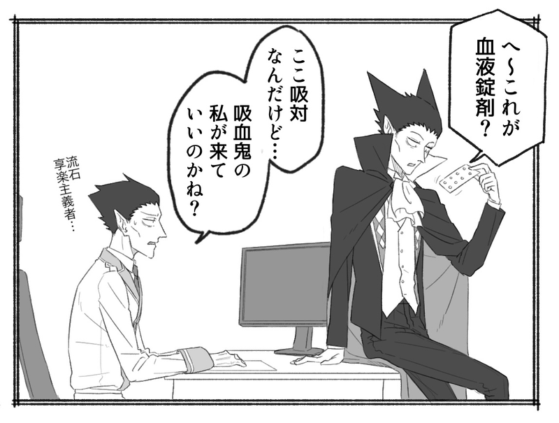 ハレテン☆quiet followDOODLE25/08/08血液錠剤の話。自分の中での設定を整理するための漫画。オチもなければ面白くないです… show all(+2 images) Tap to full screen (size:1149x869).Repost is prohibited ハレテンDOODLE25/08/08血液錠剤の話。自分の中での設定を整理するための漫画。オチもなければ面白くないです… 3 ハレテンPAST25/08/08ブルスカに載せたのやら、載せてないのやら。滅多に汚い下書きは載せませんが、あまりにもビフォーアフターが面白かったのでお目汚しですが一枚載せてあります。それと血液錠剤の話が私の中でブームみたいです。 16 ハレテンDOODLEΔ漫画(流血表現あります。閲覧注意です。)まだロナが備品になりたての頃と思っていただければ。Δロナって俺死なねぇから、全員守れるぜ!とか無茶で無謀な戦い方してたと思うんだよね。ド隊長はクソッタレ勤労!とか言ってるけど、完璧に仕事するし市民を守るという意味をちゃんとわかってたらいいなと。ここで補足を入れる愚行。すみません。 5 ハレテンTRAINING5月26日POP UPの衣装。色塗りとか諸々の練習も兼ねて。おまけはΔと反転のドとロにも角を生やしてもらいました。角は単純に癖なんですが、角に対しての知識が全く無いと言うのが反省点でした。 6 ハレテンDOODLE4月10日ド隊長とエプロンとヌーチューブ。まぁ公務員なので絶対配信は出来ないでしょうけど、こういう問答をしてるのが見たいな…という。ブルスカに載せようかと思いましたが、設定が特殊すぎるのでこちらに垂れ流します。4月28日…二枚画像追加 10 ハレテンDOODLE3月16日ようやくひと段落しました!わーい!ブルスカに載せた落書きと、最後には日記めいた文章です。ブルスカ…消すタイミングを失いまして、ひっそりと稼働させてます…すみません…。 6 recommended works 絹豆腐DOODLE公式より先にやっとかないと※201死予告ネタ ※にょた umashio_oooDONE投稿テストジョナルド ヰノウエDOODLEロナルド君とドラルクとジョン ゆきなり@🔰幸成TRAININGこなぎりくん。 もどきちDOODLEドラルクとジョン〜 Osyarotto08DONE吸血鬼すぐ死ぬ ドラルクのパンケーキアート weedspineDOODLEメビヤツの好きなものがロナルドなの可愛すぎかー!?!?(ファンブック読んだ) keiDONEキンデメさんめっちゃ好き たいのDOODLEありのままの~姿見せるのよ~ありのままの~自分になるの~フォロワーさんに差し上げたやつ(パロディです)