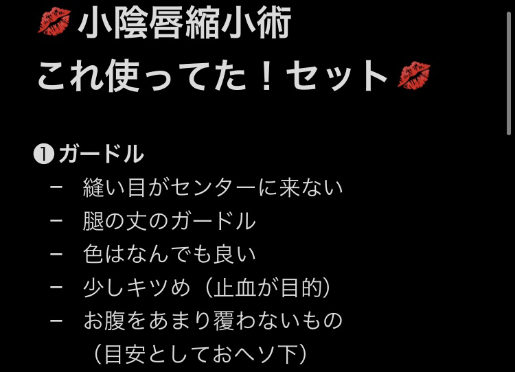 小陰唇縮小に限らず、婦人科系オペをする方は参考になるかと思います。