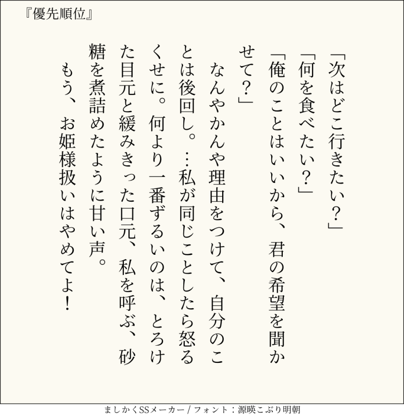 ‪貴方はチア相で『優先順位』をお題にして140文字SSを書いてください。‬