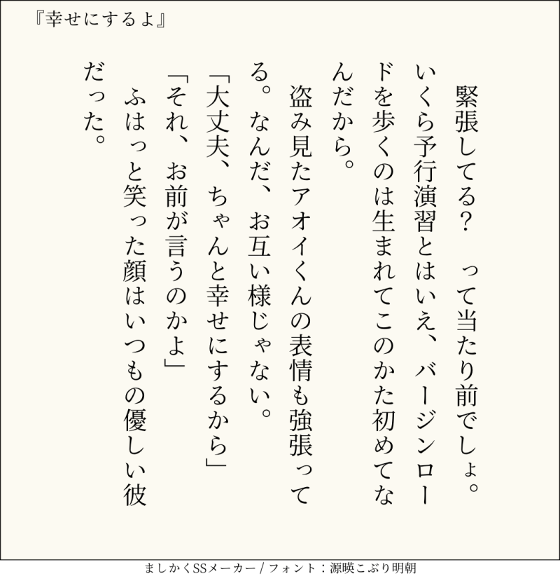貴方はアオ相で『幸せにするよ』をお題にして140文字SSを書いてください。
