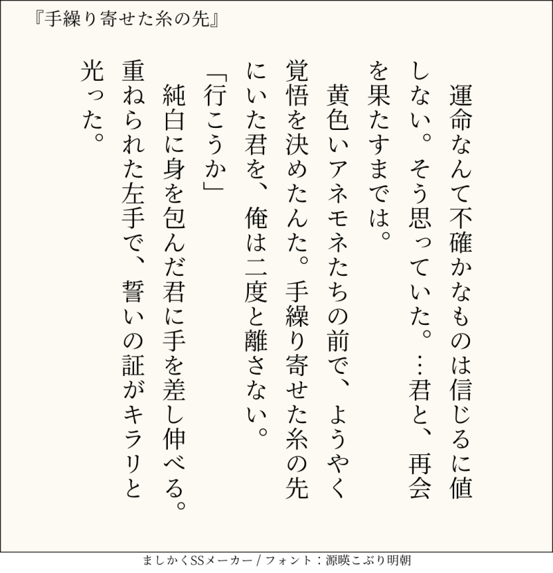 貴方はハル相で『手繰り寄せた糸の先』をお題にして140文字SSを書いてください。