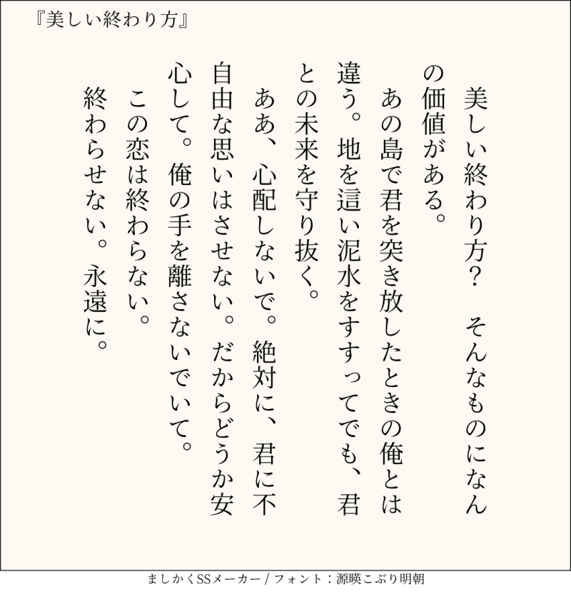貴方はチア相で『美しい終わり方』をお題にして140文字SSを書いてください。