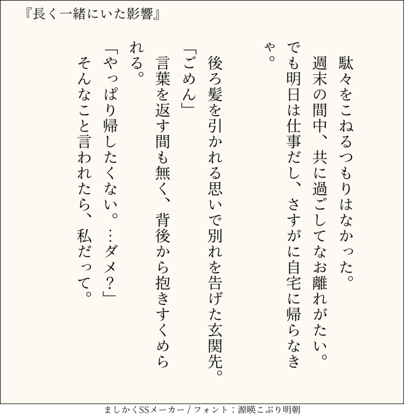 句読点込みで140文字ぴったりに仕上げるのがマイルール。140文字で書くお題ったー(shindanmaker.com/375517)で書いたSS等、短文置き場