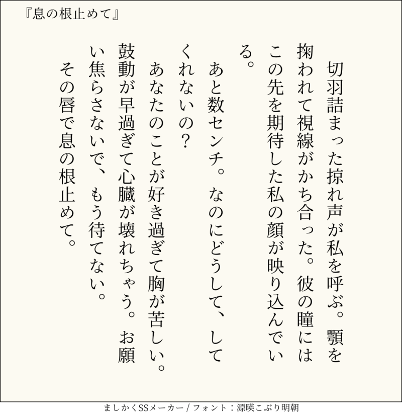 句読点込みで140文字ぴったりに仕上げるのがマイルール。140文字で書くお題ったー(shindanmaker.com/375517)で書いたSS等、短文置き場