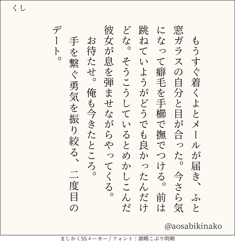 句読点込みで140文字ぴったりに仕上げるのがマイルール。140文字で書くお題ったー(shindanmaker.com/375517)で書いたSS等、短文置き場