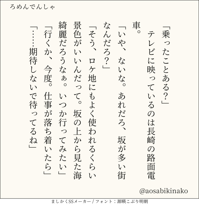 句読点込みで140文字ぴったりに仕上げるのがマイルール。140文字で書くお題ったー(shindanmaker.com/375517)で書いたSS等、短文置き場