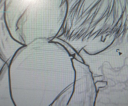 反転して眉や頭部や肩首の位置のずれを直す+線の引きやすい左側から清書していくようにしてみた。