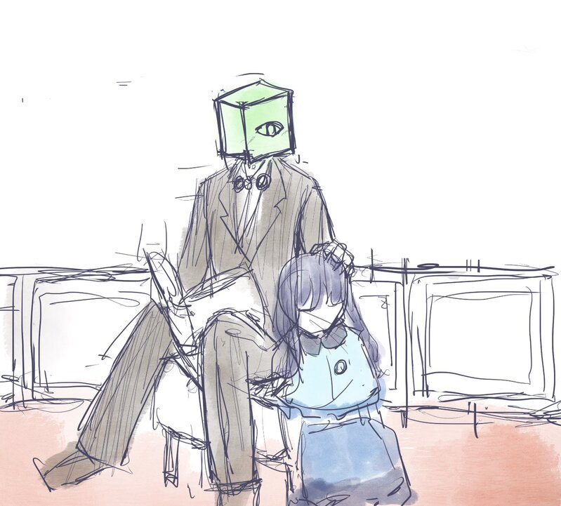 🎩🟩/deemoのイラスト参考にしながら描いていたら妄想が爆発したラフ