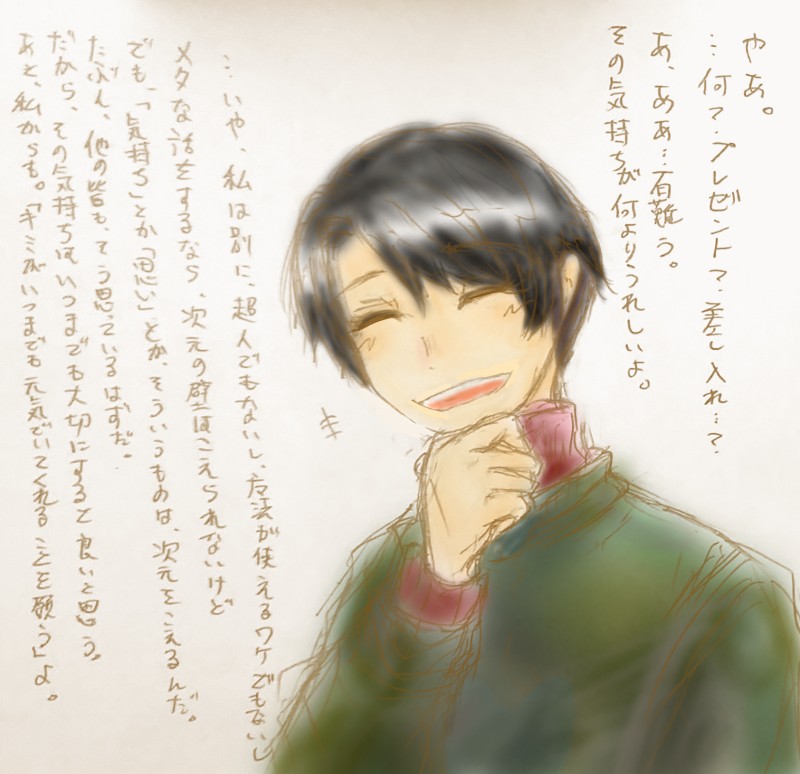 才センパイは、バレンタインデーなので、いつも応援してくれる人達(次元問わず)に感謝のメッセージを送りそうだなぁ。とか。同じテーマでも、キャラによってイメージが違う。