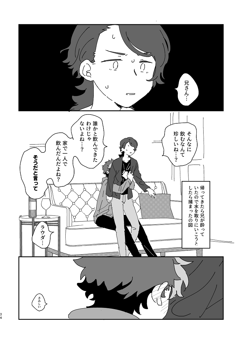 ただ、その時は目の前の男の人――見たことはないのになぜか懐かしい――があまりにもありありとリアルで、その人だけが世界から浮いているかのように見えた。相手は、俺よりずっと年上だった。十歳くらいは上なんじゃ無いかな。大人って訳じゃなかったけど。緑と黒のすこし不思議な感じがする服を着ていて、半ズボンから覗く膝を綺麗にあわせた体育座りをしてこちらを見ていた。