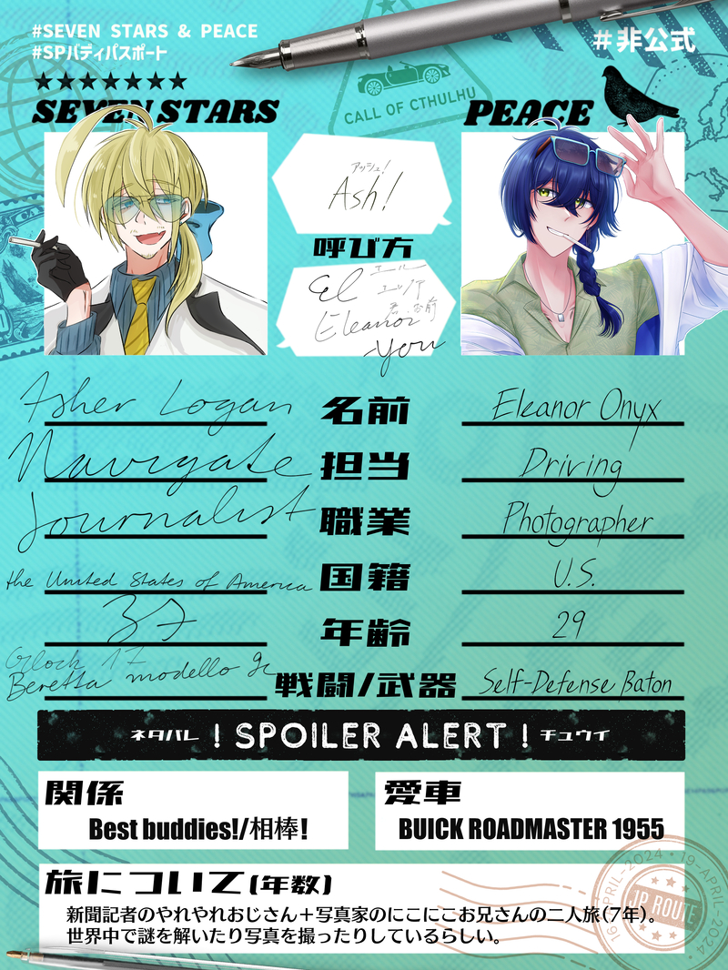 0w0_trpg☆quiet followSPOILERCoC「SEVEN STARS &PEACE」⚠️事前情報バレありセブピス自陣の#SPバディパスポート可愛いから作りたいよ~!で作らせていただきました!ていうかほとんど作ってもらいました……見てくれこのオシャレなやつを……。あういんさん本当にありがとうございます~~!PASS:OK show hide show all(+1 images) Tap to full screen (size:1800x2400).Repost is prohibited Let's send reactions! freqpopularsnackothersPayment processing Replies from the creator Follow creator you care about!☆quiet follow 0w0_trpgSPOILER【CoC『死はきみの名を覚えているか』⚠️ネタバレ⚠️】今度回させていただくカスモツHO3HO4現コンのお部屋に出すパネル素材 自作のやつ 超ネタバレでもかわいい!!!!!!!!!!!!!!!!!!!かわいいからぽいぴくに乗せたくなった。ネタバレです。鍵:yes 0w0_trpgSPOILERCoCカスモツ HO3秘匿バレ 差分のWIPこういうことでいいんですよね?の気持ちでいる なぜ早く用意しておかないこのPLあまりにも愚か あまりにもパスワードはokです 2 0w0_trpgDONECall of Cthulhu 6th『The Hog Game』✦GODARCA現代コンバート✦HO教皇 - Giuliano Amato 0w0_trpgDONEいわひら自陣の絵 お題箱ありがとうございました!🥳 0w0_trpgDOODLEセブピスじのアイテムをたくさんいただいたという喜びの絵 0w0_trpgDOODLECoC「今日はさくさくルースのクッキーを作ります」のネタバレがある……ある? ある。自機のらくがきなのでそんな全然いいものではないです。。。。。。パスワード:ok related works いわしゃこSPOILER[Sevenstars&Peace] 現行未通過✖️セブンスター☆ いわしゃこピース🕊️ ミケ粉さん 2 あめるSPOILER #SPバディパスポート⭐️ エヴァ・ウッド #hihi_kiti🕊️ クー・ドーヴポイピクにネタバレ有です(現行未通過✖) 3 26時の怪SPOILERセブピス 現行未通過✕事前情報所持者は○折角なのでテンプレと相方立ち絵借りて書きました🐙🦀セブピスのやつです お納めください#SPバディパスポート 2 blanche0818SPOILERcoc【SEVEN STARS & PEACE】事前情報バレ#SPバディパスポート 使用例 4 saborukonbuSPOILERCoCTRPG「SEVEN STARS & PEACE」(HO事前情報バレ有)#SPバディパスポートテンプレートお借りしました! 2 __juvenileDOODLESEVEN STARS & PEACE#SPバディパスポート⚠️PEACEの事前情報バレあり注意⚠️HO SEVEN STARS:Ⅶ/ほみさん #homi_the1HO PEACE:K/もりおテンプレート:blanche0818様 2 0w0_trpgSPOILERCoC「SEVEN STARS &PEACE」⚠️事前情報バレありセブピス自陣の#SPバディパスポート可愛いから作りたいよ~!で作らせていただきました!ていうかほとんど作ってもらいました……見てくれこのオシャレなやつを……。あういんさん本当にありがとうございます~~!PASS:OK 2 spring_breeze32SPOILER『SEVENSTARS&PEACE』事前情報バレあり⚠#SPバディパスポートセブピス自陣!!アシュリロ!!! 2 nibiiiiii_cocSPOILERクトゥルフ神話TRPG「SEVEN STARS&PEACE」事前情報バレ#SPバディパスポートPASS:yes 2