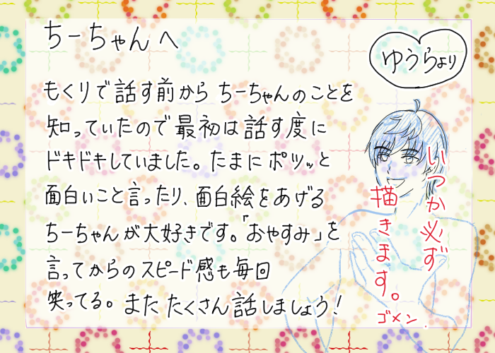 GSyuu_ra☆quiet followMAIKINGちーちゃんお誕生日おめでとうございます!間に合わなかったごめん!! Tap to full screen (size:700x500).Repost is prohibited Let's send reactions! freqpopularsnackothersPayment processing Replies from the creator Follow creator you care about!☆quiet follow GSyuu_raMAIKINGめそちゃん誕生日おめでとう!完成できませんでしたごめんなさい!! GSyuu_raMAIKINGちーちゃんお誕生日おめでとうございます!間に合わなかったごめん!! GSyuu_raDONE沢ちゃんへ GSyuu_raDONE沢ちゃん、めそちゃん、ちーちゃんお誕生日おめでとう!!いつまでも大好き。またたくさんお話ししましょう。 GSyuu_raMEMOときメモGS4のプレイ感想メモです。当時スマホにメモっていたものを、そのままの状態で公開します。あまりにもそのままだと意味がわからなかったり、面白くなかったりするので一年経って思うツッコミを入れておきました。 4 recommended works モクバDONE本誌が来なかったので、33話の感想を妄想で描きました!来月が怖いです!! HEMODOODLE猫の日のくじょくんチーフが猫耳をつけてお揃いーって言うから自分もつけたらつけた瞬間にチーフが外したらしいまだバブです すぐだまされる nrnDOODLER18 らくがき BL 2 miyosoartDOODLEレト—>ゴールディングの落書き。 リベリは猫の胸の上で寝るのが好き 三角形PASTバニー神室札束差分🩷 4 春日葵PAST想起来年前写的这篇也端上来好了,其实是写的第一篇文(处女作(?)都是清水,很纯爱 5795 yuzuxxxcoffeeDONE鶯-うぐいす-開催おめでとうございます!!ぬるいちょぎさにえっち漫画です。パスワード→18歳以上ですか?(yes/no) 5 ゆyゆDOODLEカラーイラストの練習として描いたものいろいろ色のついた絵は楽しいけど難しいですね 8 nekoDOODLE 2