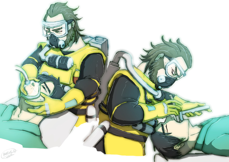 義弟に麻酔の導入と気管挿管をする博士のイラストです(謎)