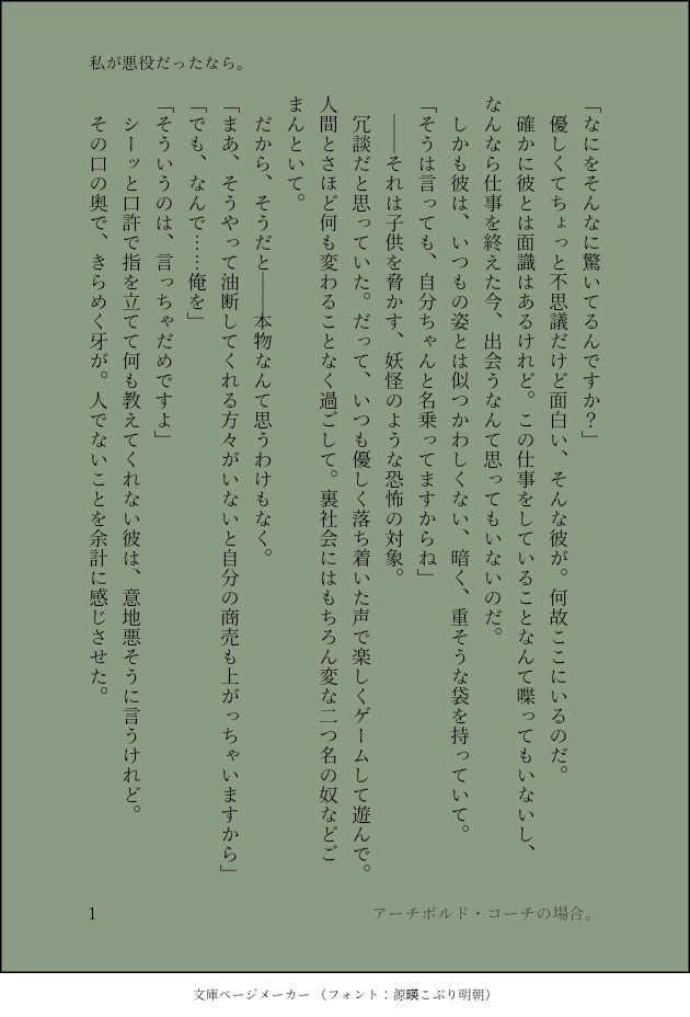 めんだこ@きりゅうきょう☆quiet followDOODLE私が悪役だったなら。アーチボルド・コーチの場合。 show all(+1 images) Tap to full screen (size:630x928).Repost is prohibited Let's send reactions! freqpopularsnackothersPayment processing Replies from the creator Follow creator you care about!☆quiet follow めんだこ@きりゅうきょうDOODLE私が悪役だったなら。鳴ノ世ユウトの場合。 めんだこ@きりゅうきょうDOODLEこちらはFAに狂ってしまった可哀想な結末であって決してFAの中身にどうこう突っ込みたいとかそういう意図はまったくありませんがとてもとても素晴らしいイラストをありがとうございましたオタクが気を狂わせてしまって本当にすいません。FAの二次創作ですご注意ください。決してFAを描いた作者様とは関係のない、ただのオタクの気の狂いです(予防線はいっぱい張ってなんぼ 2 めんだこ@きりゅうきょうDOODLE私が悪役だったなら。音沼ロノエの場合。 2 めんだこ@きりゅうきょうDOODLE私が悪役だったなら。遊翔アビの場合 2 めんだこ@きりゅうきょうDOODLEもずんに捧げるシチュボ台本(多すぎるのでそのうち追加されていく 8 めんだこ@きりゅうきょうDOODLE私が悪役だったなら。アーチボルド・コーチの場合。 2 recommended works 白言言言言DOODLE涉英 2 枝昼0910DONE[影日]在晚安之前 PW:影日罗马音+日向生日年月日。共8位英文小写字母8位阿拉伯数字 26 FranzPervoDOODLE🦊🐧 光来仙DONE遅れたけどマダさん誕生日おめでとう!!!キラーくんは気にしないでくださいなのだ!!(^^ω)キラマダ?? nuittukikageDOODLE まさゆめDONEバレンタインのゆるふわ旅希漫画です!!!フルカラーだよ!めっちゃ頑張った!!! 8 白羽生DOODLE創作企画 ダーリンランデヴー!(@MaleFiciuM_U)の小説です。会話は自宅ルミ・アリア目線。水槽様(@U_jiyuchou)宅浅間浩二郎さんをお借りしています。 303 SimpSonic3DOODLEArtist: Khương Dực“Has anyone seen Kashimo Hajime or Ridotomoji Jikan?“Pass: Are you 18 years old? 2 nagare_lv1DOODLE町葬屋ネタバレトレースしたやつだけ2つもってきた(再掲) 2
