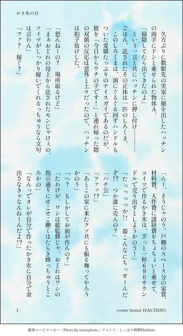madokando☆quiet followDONE7月25日は🍧の日!!覚えた!!はちそ!! show all(+3 images) Tap to full screen (size:618x1132).Repost is prohibited Let's send reactions! freqpopularsnackothersPayment processing Replies from the creator Follow creator you care about!☆quiet follow madokandoDOODLE同棲はちそ。大は小を兼ねない 3 madokandoDOODLE同棲はちそ 大は小を兼ねる 2 madokandoDOODLE同棲はちそ。ハチくんのひとりの朝 3 madokandoDONE同棲はちその夏の暮れ。 madokandoDONEバイクの日の同棲はちそ 3 madokandoDONE同棲はちそ、パンツのはなし 2