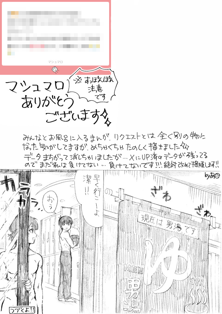 doridoridreamer☆quiet followDONE拝屋さんと皆が温泉に入ってるかもしれない漫画。まろ返絵が漫画(11P)になったので、こちらの返信のみ別に分けてまとめました。⚠ご注意⚠温泉ネタのため皆すっぽんぽんです。 show all(+10 images) Tap to full screen (size:720x1020).Repost is prohibited Let's send reactions! freqpopularsnackothersPayment processing Replies from the creator Follow creator you care about!☆quiet follow doridoridreamerDONEまろ返信プチまんが※ゾーニングの為TL上から消去済ですそっとじ様の『あとまかシリーズ』より3次創作⚠未来軸謎設定⚠固定夢主さんのお姿あり⚠肌色多めギャグのためワンクッション。よろしければどうぞ☺ 4 doridoridreamerDONE🙏さんに制服を着てもらうまんが(全12P)。白/宝/高/校の女子の制服って本当におしゃれですよね☺️✨ 12 doridoridreamerPAST1年前(…だよね?)に描いたそっとじ様の【骨折シリーズ(tkrv夢)】よりrindくんと絢辻ちゃんのお誕生日プレゼント漫画。少女漫画風オマケのラフを添えて。いつも通りしょうもない内容ですがこちらにまとめて再UPです。 10 doridoridreamerDONE拝屋さんと皆が温泉に入ってるかもしれない漫画。まろ返絵が漫画(11P)になったので、こちらの返信のみ別に分けてまとめました。⚠ご注意⚠温泉ネタのため皆すっぽんぽんです。 11 doridoridreamerDONEイラスト付きまろ返信16〜30まとめ。初っ端🌱桐さんのキス絵がきてるのでワンクッション挟んでます。マロの内容は前回より若干強めにぼかしました。ひとことが添えてあります※蛇足⭐︎ひとつだけ別ジャンルのイラストが入っています(tkrv夢・骨折シリーズより) 17 doridoridreamerDONEイラスト付きまろ返信 1~15までのまとめ。マロ内容をざっくりぼかしてあります。 15 recommended works 浅羽(成海周)DOODLEバニーの日記念バニ辻ちゃんパスワードは絢辻ちゃんの名前3文字 domdoo00meDONE漫画続きおまけ我慢できず玄関で始めちゃうしグダグダな翌朝アバブ(笑) 2 えだまめDONEキメ学獪×鬼殺隊善※謎設定※獪岳は大学生になってます18歳以上ですか?(y/n) 7827 ☁☁☁DOODLE _na1190DOODLE絵が描けないなりに頑張って描いてみたやつ。クロ月、ちび月、第3体育館組などなど 17 ぼたもち。DOODLE出勝 2 marimonosumikaSPOILER【SSS.S】ネタバレありここに色々ぶちこんでく 8 meowXeDONEカラーで一枚描いた!記念・厚塗り始めたあたりで心折れたけど えいやと色数増やしてみたらなんとかなった~~・構図決めるにも一発で決めるのは無理あるな!と気が付いた ざっくり描きたいものを順を追って出力していけばいいらしい ムズカシイ でも気に入った!・誕生日おめでとう怪盗ゴールド♪ ファンです サインください! 7 カミハDOODLEアイドルは光だから救いを求めてしまう