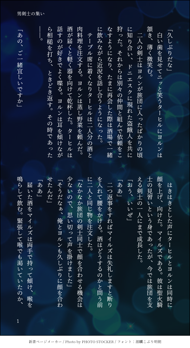ターヒル、ヨルン、マイルズの☆4男剣士三人で飲む話。ステッド×ヨルン、シモの話が少々有