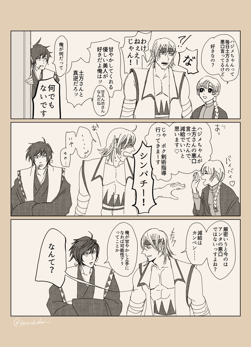 おかわり @secondudon トシさん周辺を節操なく。ハジトシ中心。【pixiv】https://www.pixiv.net/users/8672313 ☆quiet follow Yell with Emoji POIPOI 26