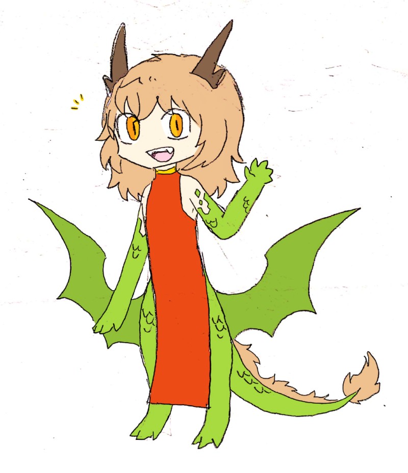 応龍(翼が生えてる東洋龍)タイプのチャイナ竜人ちゃん描きたい…