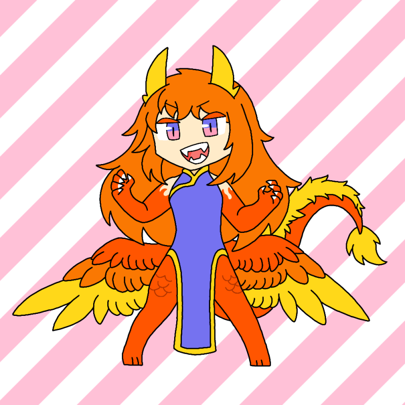 応竜、イラスト検索すると鳥の翼タイプが多い気がするので灼蓮・獄蓮でやってみた&ちょっとモフみを足してみたの図です