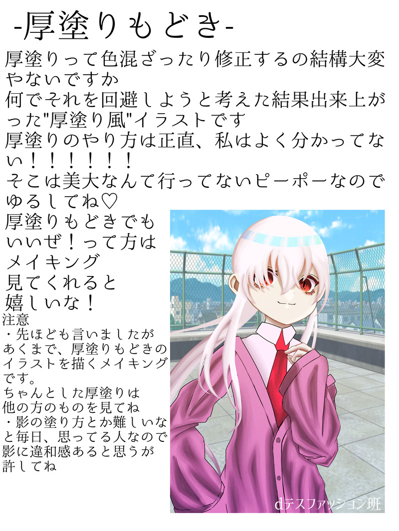 ぐっち☆quiet followMEMO厚塗りもどきのメイキング俺の記憶力がないので健忘録の為に書き書きしたぜ show all(+8 images) Tap to full screen (size:2304x3072).Repost is prohibited Let's send reactions! freqpopularsnackothersPayment processing Replies from the creator Follow creator you care about!☆quiet follow ぐっちPROGRESS鰯と柊げんみ✖︎この差分を当日、使う機会があるかは知らない!! 2 ぐっちMEMO厚塗りもどきのメイキング俺の記憶力がないので健忘録の為に書き書きしたぜ 9 ぐっちSPOILERロトあだげんみ✖︎ 発言メーカーまとめin PL &KP発言卓前から初日まで ぐっちDOODLE「死ぬには良い夜なので」げんみ✖︎ 久しぶりのらくがき楽しいね♪ちょっとした、怪異パロです。 ぐっちDOODLE胡蝶之夢 げんみ✖︎ とりあえず、シャムさんと王!次はブルーさんとドロシーちゃん描く♪ ぐっちDONE紡命論とシンギュラリティーのネタバレございます。げんみの方は見ないようにしてください。パンケーキ夜行の立ち絵!!!!!!合わせしたよ! 3