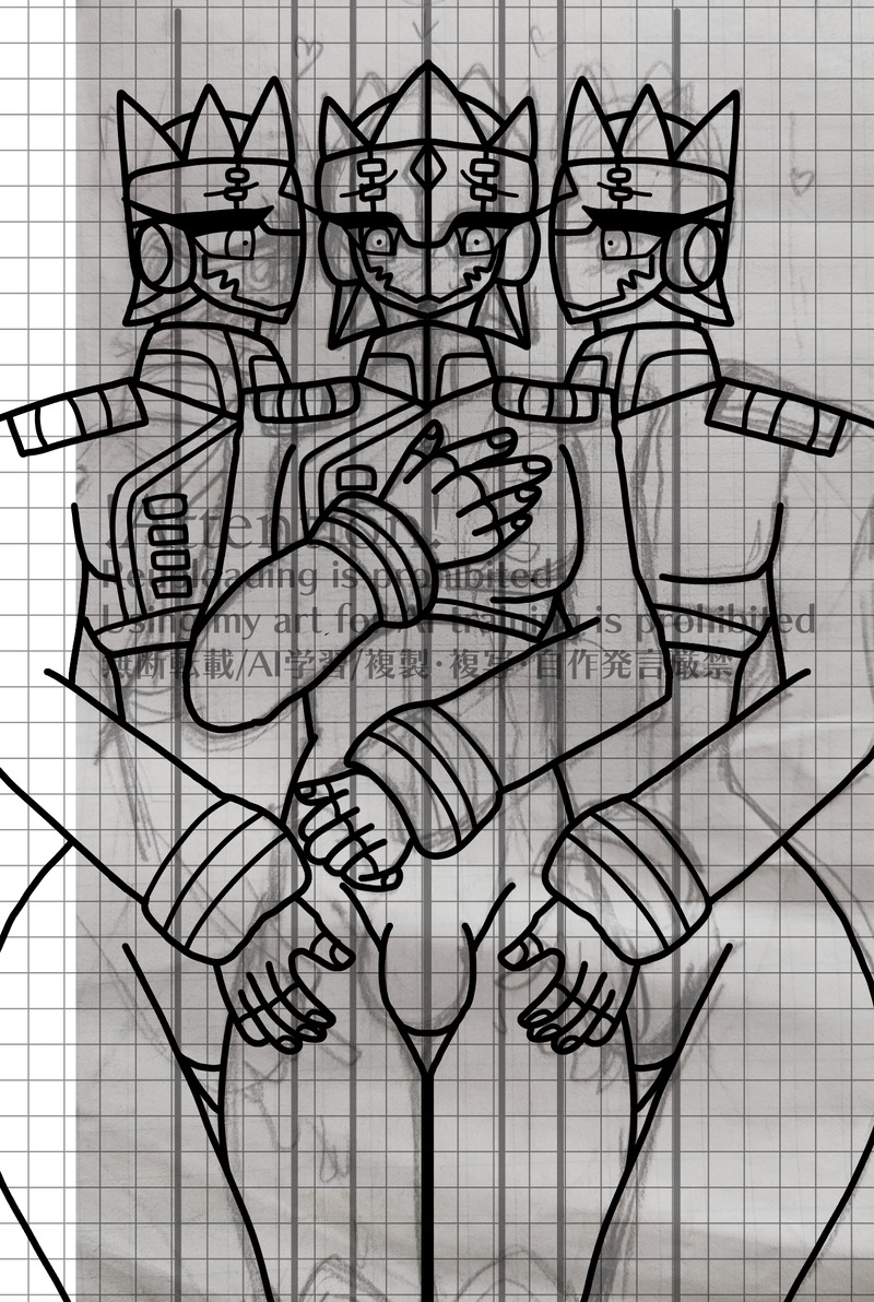 アンドロイド・サルダートたん×3の線画までよんズイ(ง ˘ω˘ )วズイ♥