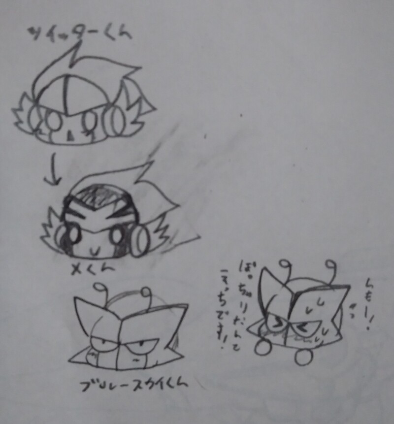 X(Twitter)くんとブルースカイくんの擬ロボ化SD落書きズイ(ง ˘ω˘ )วズイ♥