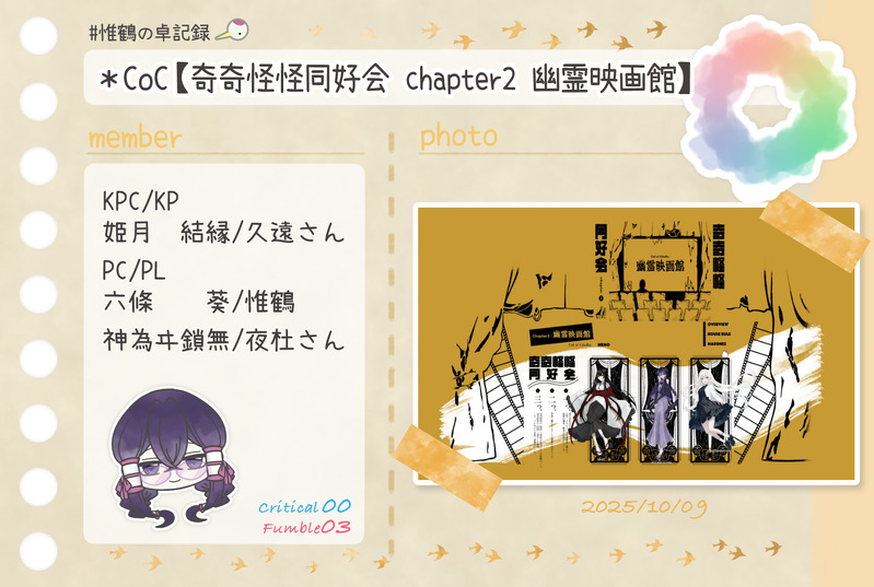 惟鶴(いづる)☆quiet followDONE*CoC【奇奇怪怪同好会 chapter2 幽霊映画館】KPC/KP姫月 結縁/久遠さんPC/PL六條 葵/惟鶴神為ヰ鎖無/夜杜さん #惟鶴の卓記録 show all(+1 images) Tap to full screen (size:1764x1185).Repost is prohibited Let's send reactions! freqpopularsnackothersPayment processing Replies from the creator Follow creator you care about!☆quiet follow 惟鶴(いづる)DONE*CoC【奇奇怪怪同好会 chapter2 幽霊映画館】KPC/KP姫月 結縁/久遠さんPC/PL六條 葵/惟鶴神為ヰ鎖無/夜杜さん 2 惟鶴(いづる)DONE*CoC【傘月堂夜話】第参話『玄い眸』KP:惟鶴PC/PL駒鳥 朱/さくさん白金 大我/惟鶴北武 六花/Mayuさん青島 竜樹/めいそうさん 2 惟鶴(いづる)DONE*---*---*---*---*---*---*---*---*---* Happy Birthday 9月生まれの子たち*---*---*---*---*---*---*---*---*---* 惟鶴(いづる)DONE*CoC【灰と甘露】KP:ななさんHO1×稲荷空狐:瀬田 彩華/雪鶴花さんHO2×七歩蛇:八雲 澪/惟鶴HO3×獏:柳 容二/手袋さんHO4×橋姫:一条 桃椛/MayuさんHO5×絡新婦:細蟹 契/めいそうさんHO6×蝶化身:麓山 珠莉/ももさん 5 惟鶴(いづる)DONE*CoC【ドロップアウトヴァンパイア】HO1届人/KP:二階堂 賢梨/惟鶴HO2殺人:シュン/ヒノリさん 3 惟鶴(いづる)DONE*CoC【傘月堂夜話】 2025.9.22-23第伍話『桜隠し』エピローグ『桜の下の満開の宴』KP:惟鶴PC/PL華学 永真/にゃんべぇさん李 颯懍/ひなたさん東条 菖蒲/すてあさん蜻蛉 千琴/かいさん 4 related works 惟鶴(いづる)DONE*CoC【奇奇怪怪同好会 chapter1心霊プリ】KPC/KP姫月 結縁/久遠さんPC/PL六條 葵/惟鶴神為ヰ鎖無/夜杜さん 2 惟鶴(いづる)DONE*CoC【Good night,Judas.】KP:ららうさぎさんHO1:掛井紳司/ぽるかさんHO2:戌亥文聡/彼方怜異さんHO3:須賀烈斗/asatoさんHO4:雨倉燕時/惟鶴 3 惟鶴(いづる)DONE*CoC【犬猫戦争は、終わらせない。】KP:惟鶴HO1犬:狛犬 一之助/水煙さんHO2猫:南古屋 猫央/ひなたさん 2 惟鶴(いづる)DONECoC【大正グロテスキズム】KP:惟鶴PC1精神科医:芥子奈 右近/asatoさんPC2小説家:東雲 吟/彼方怜異さん 2 惟鶴(いづる)DONE*CoC【奇奇怪怪同好会 chapter2 幽霊映画館】KPC/KP姫月 結縁/久遠さんPC/PL六條 葵/惟鶴神為ヰ鎖無/夜杜さん 2 惟鶴(いづる)DONE*CoC【グランドグラビティ】KP:久遠さんPC/PL歌騙己己尽/夜杜さん棗 由良/ひすいさん十司 真木/惟鶴 2 惟鶴(いづる)DONE* CoC【間も無く、最終電車が参ります。】KP:惟鶴PC/PL:寒鳥 皇/カシスナッツさん矢野川憶李/昇天さん宇治 京梧/shuuuさん 2 惟鶴(いづる)DONE*CoC【Joker≒Joker】KP:シーナさんHO♤:ブルーバード/ジョリさんHO♡:ハーネット/ひなたさんHO♢:リラ/惟鶴HO♧:レングマン/鹿猫さん 3 惟鶴(いづる)DONE*CoC【理不尽sermarie】KPC/KP白椿翠鳥/久遠さんPC/PL真鴨祥午/惟鶴 2 recommended works _tannbo_24DOODLE払えるのかい!払えないのかい!!どっちなんだい!!!!!!!!もう金貰えるなら割と何でもするようになってしまっている万年金欠ギャンブラー獪♀と獪♀に金さえ払えば割と何でもしてくれることにハマってしまった善の地獄のエロ日常 halfhoomancatDONEWanScaraLumi 😋Pass : Are you 18+ or not? My bday?(yes/no)mmdd*Bday can be seen on my profile when you follow me. ひとほしDOODLE昨日の麻雀続き。無事(?)に対局が終わったアタブロ。この後はよしよしイチャイチャタイムに入ってほしい。 jmilytm95DOODLE治侑 2 LetsMedsINFOBuy Ibyra 150 mg Generic Olaparib Brands price Manila Philippinesgeneric olaparib 150 mg manila philippines: Buy from Trusted Brands at LetsMeds! mikki_matsuDOODLE2月に発行予定の新刊の冒頭部分です。※こちら🎴くん女体化となりますので、苦手な方はご注意ください。※校正できていない状態なので、これが初稿かぁ…くらいの気持ちでお読みください。※R18部分はありませんが、続きがR18なので年齢制限させていただいています。 12110 513fridayDOODLE怪盗ってお題(ナンダコレ) morukahiDOODLE事件起きた図 かんぱちDOODLECoC「町葬屋怪異譚」 第3話「秋容、命を見る」