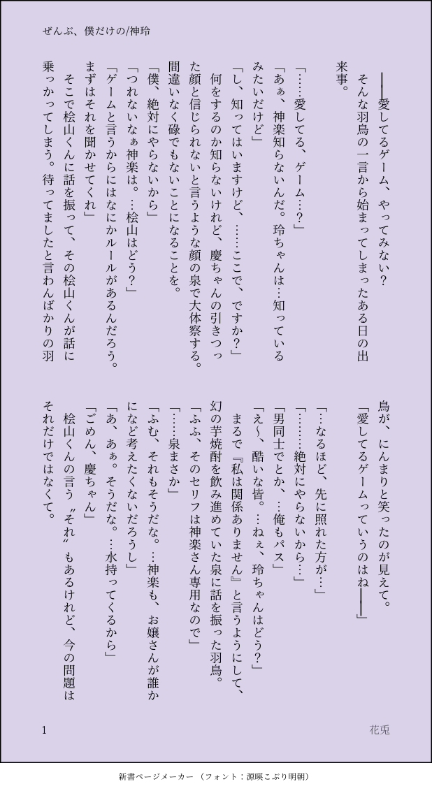 かう🌷☆quiet followPASTぜんぶ、僕だけの/神玲#stmy_love_game show all(+6 images) Tap to full screen (size:618x1132).Repost is prohibited Let's send reactions! freqpopularsnackothersPayment processing Replies from the creator Follow creator you care about!☆quiet follow かう🌷DONE【槙玲】8.髪の毛結ぶ 2 かう🌷PAST【槙玲】 どうする?冬と春の間のまきれ~ 3 かう🌷MOURNINGプライベート衣装に心臓撃ち抜かれたのでSSpass 【 誕生日(4桁) 身長 】 2 かう🌷MOURNINGnwアニメみたあとの勢いで生まれたもの。ネイサンに教えてもらった気持ちのあらわれが、じぇみにのラスサビのシーンに繋がるのかもしれないとおもってしまったpass 【 誕生日(4桁) 身長 】 2 かう🌷DONE【神玲】サプライズは思いもよらぬところから 4 かう🌷MOURNING【神玲】指先だけじゃ足りない5月のえーみの無配ですパスワードは「身長+年齢(3桁)」 2 related works かう🌷PASTぜんぶ、僕だけの/神玲#stmy_love_game 7 recommended works かう🌷PAST【槙玲】「ねぇ、幸せ?」pass:神楽亜貴の誕生日(数字4桁)#まあるいことば 4 ricecat_inekoDOODLE出産中の水木と立ち会うきたろう※失禁描写ありpass:性癖は大丈夫ですか?y/n sirome0_0DONEケイト先輩の寮長時代。どこかの次元ではあったのかもしれないし、なかったかもしれないそんなお話。(捏造) 600 ojikanooooMEMOCoC『くらしリサイタル』作:もしもシティ様KP:おじかの/大三東 風深PL:らゆさん/野莇 カズラ Nyan9nimSPOILER로잘린드 귓말사담이 웃겨서 캡처해둠시날 스포 X 개인비설 언급 Opw: yes 2 tmsk_ymDONEタッチでしゅ! enuk3815DOODLE明日は晴れてくれるかなーーー秒針が鳴る のやつの黒髪視点。同じ場所で同じ時間を過ごしてるのに見えてる世界が全然違うのっていいよねという話でした(そうだっけ) 2 A_LabyrinthosDOODLE先天性転換ナタノイ사진자료 트레,,이런거 보고 싶다,,일단 운동가야 해서 갔다와서 다시 그릴지는 생각해볼려고写真資料トレ、、こんなの見たい、、とりあえず運動しに行かなきゃいけないから、行ってきてまた描くかどうかは考えてみようと思ってPW あれ 数字 Rice_or_PankoINFOエモクロア『ロールシャッハシンドローム』--------------------------------------DLC/DL ❙ 音葉 光彦/カじキまグろ共鳴者/PL ❙ 音葉 叶衣/ぱんSDL ❙ ガンバる☆んば (敬称略)--------------------------------------SCENARIO CLEAR