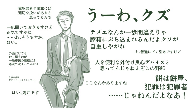 yome_first☆quiet followDOODLECoC「同居人」に持ってく予定のPC。鴻江嵐32歳職業刑事。APP8ってこのくらいでいいかね…… #TRPG Tap to full screen (size:1920x1080).Repost is prohibited Let's send reactions! freqpopularsnackothersPayment processing Replies from the creator Follow creator you care about!☆quiet follow yome_firstSPOILER文字キャプションもリスト限定いけるのか確認 yome_firstDOODLEひさびさにマジの落書き yome_firstDOODLECoC「東京ゴーストマティカ」ネタバレあり未プレイNG。耐えられなかったので描いた いつかの未来だよ絶対に yome_firstMOURNINGCoC「東京ゴーストマティカ」全員生還クリア時の自陣。ネタバレはないですが一応ワンクッション。----どんな力があっても、どれだけ覗き込んでも、ひとつにはなれなくて、何もわからなくて、わかった時には、もう届かなくて。でも、手を触れて分かろうとしてくれる人がいるから、だから。大丈夫。 yome_firstDOODLEうさ男 3 yome_firstDOODLE描きてえから描いたバニス男 バニスに上着かけるのすき スカジャンとかもよい 2 related works 発芽ゴリラPROGRESS何もないのもアレなので立ち絵進捗ポイポイ!前上げたのと大して変わってないとか言わない! #進捗 #TRPG みもりよぞらDOODLE現代入りネタで、色々な手違いが重なって某奇祭の御神体に跨る事になった獣人の男の娘、この時期はこの類(子孫繁栄祈願?)の祭りが多いそうで。 きよし@キバ&ウィザード履修中DOODLETRPGで作成したPC 圭(ケイ) 28歳「男娼の限界腐男子」と言う設定 りゅうしDOODLEメカバレ風 totukiDONEFateTRPGで使ったキャラ絵。オリ鯖オリマスターご注意。 5 ぽんずDOODLE霧一とロコン誰にも賛同してもらえないことを前提に言うんだけど、なんか似てる気がするんだ…前髪のあたりとか?かわいい今ふと思ったけど、直人はサーナイトとか並べたいな~PC×ポケモンはたまーに見たくなるね みもりよぞらPAST獣人(げっ歯類のチンチラ)のハイプリースト(男の娘)[性格]人懐っこくスキンシップをとるのが好きだが、基本的にインドアで面倒くさがりな感じ きよし@キバ&ウィザード履修中DONETRPG「デッドラインヒーローズ」のPCキャラ 「オダマキ」身長(ヒール込み)189cmのオネェ 小鳥遊PROGRESSハイフェッツ草案 recommended works sumi_tsoTRAININGお前を勝手にTRPGのキャラにする 山田けんげんDOODLE根津とずいちゃん ゆきやPAST園部 林助(そのべ りんすけ)インセインのキャラシって貼っていいもんなの?よその探索者さん達もお借りしてます。通過済の方は分かるかもしれない程度のネタバレも含みます。削除依頼がありましたらお手数ですが@moryuまでお声がけください。描いたらここに追加していきます。 5 masudanosousakuDONE詩葉 5 19tsukiSPOILER最初のディスプレイで考えてたけど、よく考えたらネタバレになるので供養。現行未通過❌ しげるDONE『かいぶつたちとマホラカルト』HO1 / 狼:狼崎 颯帝(かみさき はやて)表情差分:いろいろ卓が終わるまで隠していましたが、29歳男性です。差分の中では涙目の媚び顔が好き。あと全然余談ですが、礼央(自探索者/ロトあだHO1)の兄です。兄妹揃って治安が悪い🐺🐉 2 おシャコSPOILER『海も枯れるまで』🔞❌現行・未通過NG ❌※人を不快にさせる過激な描写があります『おおしけ』【PW】yes 4 masudanosousakuDONE木崎 咲 3 ymzknlDOODLEバレンタイン(降志)4 14