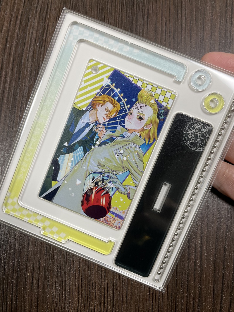 真ん中のカード部分をくるくると回転させることの出来るアクリルスタンドです。パークでデート中の二人がとっても素敵な一品!