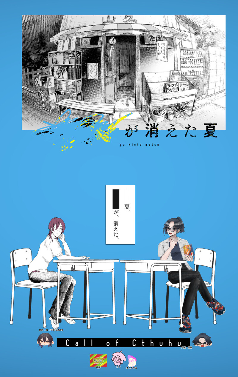 okakitaku☆quiet followSPOILERCoC【████が消えた夏】- 両生還KP:みなすさん🍆PL/PC:オストリカ🍓世古 一果 明舞さん🍊八朔 流果「素直になれんかったな、」ウオーーッ!世古の感情が流れこんでびしょびしょになっちゃったビショビショの貝楽しかった!!ありがとうございました にょ"ーッ(鳴き声) #クトゥルフ神話TRPG cthulhuMythosTrpg #卓報告 tabletopReport Tap to full screen (size:1077x1702).Repost is prohibited Let's send reactions! freqpopularsnackothersPayment processing Replies from the creator Follow creator you care about!☆quiet follow okakitakuSPOILERCoC【████が消えた夏】- 両生還KP:みなすさん🍆PL/PC:オストリカ🍓世古 一果 明舞さん🍊八朔 流果「素直になれんかったな、」ウオーーッ!世古の感情が流れこんでびしょびしょになっちゃったビショビショの貝楽しかった!!ありがとうございました にょ"ーッ(鳴き声) okakitakuDOODLE緒続さんのよくわからん落書き okakitakuDONECoC「███が消えた夏」▼世古 一果立ち絵RTAをしたので普通に塗ったやつはディスプレイ無いです!!!!!!学校の椅子に座ってる想定です 3 okakitakuSPOILERK課現行未通過❌自陣もまだ駄目❌2話好色事前秘匿もらっていれば⭕️嬉しいから用意した!可愛いんだもんあの秘匿KPさんからは許可もらってから描いてます! okakitakuSPOILERCoC【僕らに夜明けはやってこない】- 両生還KP/KPC:花華糖さん/獅子黄 紫詩子PL/PC:オストリカ/アシュレイ モリス「なんやあ、ポロポロでスクランブルエッグになっとるやないか」同空継続嬉しい〜〜 やった〜! okakitakuSPOILERCoC【ある作家の首水槽】- エンド3HO1/作家:綴木 サラ|オストリカHO2/誘拐犯:ライト|えだまめさん(KP)「眩しすぎるな、よくそんなこと恥ずかしげもなく言えるね?」やった〜楽しかった〜嬉しいねこれね〜この二人おもろいな味するからまたみたいねこれね〜 2 related works 10ma10_2sSPOILER共感覚 現行未通過🆖pass→❲y/n❳ 五十嵐PROGRESS 八月 真也ValentineCoC探索者男子でバレンタイン 10 八月 真也DOODLE探索者落書き集 15 五十嵐PROGRESS 五十嵐PROGRESS みろくDOODLE新しいクトゥルフ探索者新米ぽんこつ大食い鑑識くん みろくDOODLE我が家の探索者。ファッションデザイナーの白雪逸姫くん。クトゥルフの某シナリオにて触ってはいけないものに2度も触れ、冒涜的な幻を何度も見ることになり発狂。探索者ロストにはならなかったが、半永久的に左足が動かせなくなった。【ナイフの幻影】 2 みろくPAST1年前に描いた探索者イラストのまとめ 12