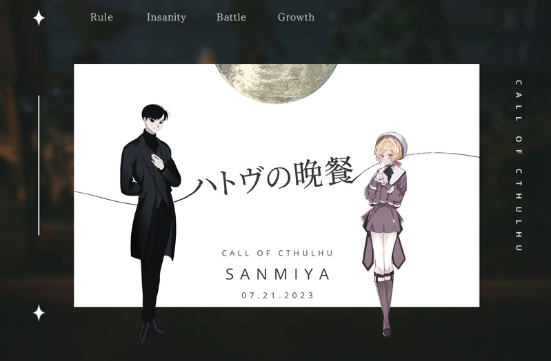 rai_n1_trpg☆quiet followINFOCoC【ハトヴの晩餐】 KP/KPC:やこさん / 御縁 囚 PL/PC:水雨 / チセ◆両生還 Tap to full screen (size:3262x2138).Repost is prohibited Let's send reactions! freqpopularsnackothersPayment processing Replies from the creator Follow creator you care about!☆quiet follow rai_n1_trpgPROGRESS進捗 rai_n1_trpgINFO𝑪𝒐𝑪【咲くも言わぬも花次第】 ❚𝙆𝙋:水雨 ❚𝙋𝘾/𝙋𝙇 𝗛𝗢𝟭椿:刀我野 彪匡 / 浩太𝗛𝗢𝟮薔薇:ディーノ・フィオーレ / 水雨〈敬称略〉◆シナリオクリア rai_n1_trpgINFO𝑪𝒐𝑪【ご注文は私でしょ!?】 𝗞𝗣:水雨 ❚𝙋𝘾/𝙋𝙇 𝗞𝗣𝗖:月雲 新星 / 水雨 𝗣𝗖:雛罌粟 虞 / ちよこ(敬称略) ◆両者生還 rai_n1_trpgINFO𝑪𝒐𝑪【Blue:( Screen of Panic!!】 ❚𝙆𝙋:水雨 ❚𝙋𝘾/𝙋𝙇 𝗞𝗣𝗖:アリステア・ロペス / 水雨𝗣𝗖:ギルバート・マイヤーズ / てな〈敬称略〉 ◆シナリオクリア rai_n1_trpgINFOCoCシナリオ【 エンディングを勝手に決めつけないで 】◆KP:kugiさん◆PC/PLHO1:蔓 藍羽 / 葉月さんHO2:遊馬 晴臣 / 水雨◇ED rai_n1_trpgINFOシナリオ『KPCが知らない女と風呂に入ってるんだが!?』KPC:石火矢燈喜(さくらばさん) PC:水無瀬惟澄(水雨)シナリオクリア