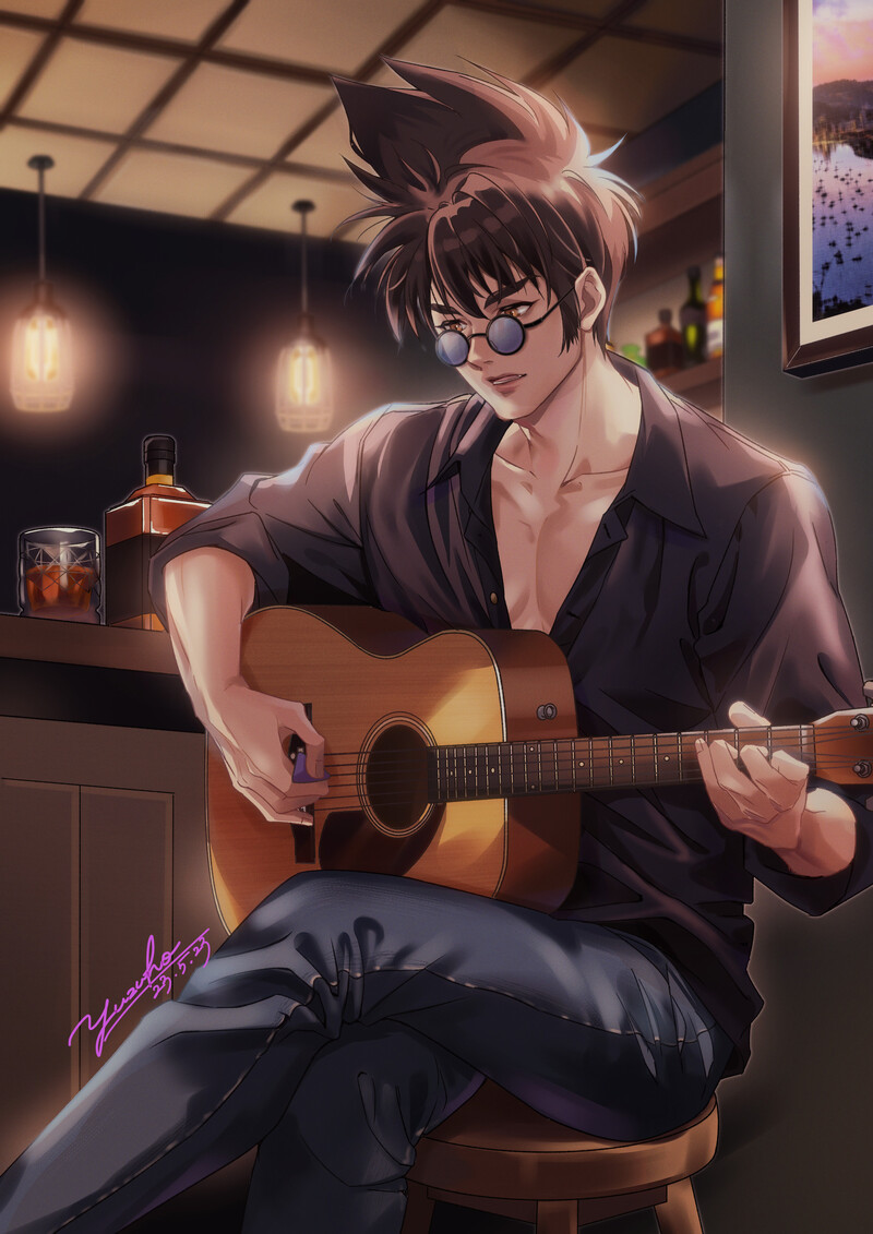 ということで、ライブに影響され、SPIRAL ANSERをイメージしたお酒を飲みながらブルースを歌うバサラを描いてみました。