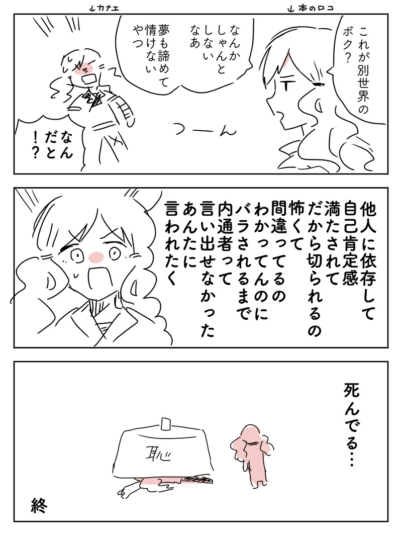 よつば☆quiet followDOODLE生き残りゲーム本読んでなくても読める漫画ですが、読んでた方が理解しやすいかもしれません Tap to full screen (size:900x1200).Repost is prohibited Let's send reactions! freqpopularsnackothersPayment processing Replies from the creator Follow creator you care about!☆quiet follow よつばDOODLE強謙イベント申し込んでみようかな(行けたら行こうかな)とチマチマ描いてたら普通に脱落しました!次回改めてチャレンジしてみたい……!これは没サクカです よつばDOODLE※CP こういうガラ→ニンとラク→スミ本が……読みたい…… よつばPROGRESSメイド服シリーズ再開予定です かなり遅くなってしまいすみません……! よつばPROGRESS原稿終わったので落書き漫画を描くぞ と描き始めたんですがカードゲームのキャラって作画コスト高すぎて落書きにならない よつばDOODLE【創作】ハッピーハロウィン!今年もTRPGでつくったキャラたちです よつばPROGRESSできたらできます(頭痛が痛い) recommended works iris_ulvDONE #1d100で決めた赤面度でリプ来た探索者を描く72赤面の光明盧黒くんに下の名前呼ばれた時の光明ですね 3 よつばDOODLE #1d100で決めた赤面度でリプ来た探索者を描く低い順からシャルルくん、架純さん、雁金くん、遙くんでした!ありがとうございました! よつばDOODLE「見る」が語源のアイドルならば、「見て見ぬふり」はできないよねー #ぼかます よつばArtSummary2022初詣はちゃんと行ったしちゃんと起きました よつばPROGRESS創作キャラ設定 とりあえずAPP18組の創作設定とTRPG設定それぞれ…… 3702 you110116DOODLE #1d100で決めた赤面度でリプ来た探索者を描く 微調整・まとめ/4枚目はシチュの答え※アイラスのネタバレ有ります/みんな付き合ってくれてありがとう!楽しかった~~~~~~~~。 4 よつばDOODLE【APP18組】結局描いたバニーネタ よつばDOODLEバレンタインのAPP18組です 2 よつばDOODLE【APP18組】テンプレお借りしました 2