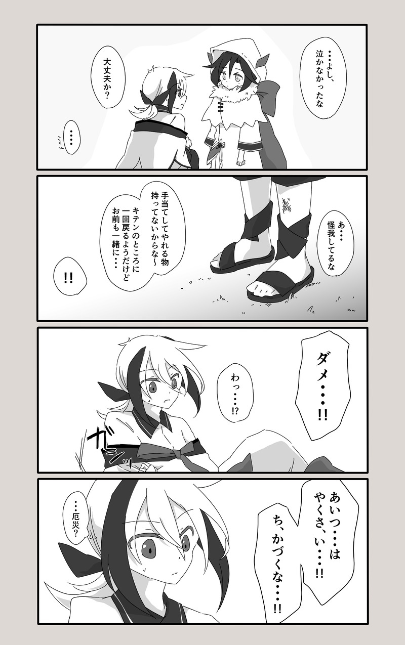 -ねね-☆quiet followDOODLESV漫画 更新③ show all(+5 images) Tap to full screen (size:1600x2550).Repost is prohibited Let's send reactions! freqpopularsnackothersPayment processing Replies from the creator Follow creator you care about!☆quiet follow -ねね-DOODLEZA仮案書いておかないと忘れるので字汚いですが個人的メモXYから5年後の自宅の話。 2 -ねね-DOODLE翡翠まとめ 26 -ねね-DOODLE「昔日の星を紡ぐ」 あとがき約1年半ちまちま進めていましたが、無事に完結させる事が出来ました…!描きながら嬉しいお言葉たくさんいただけて頑張る糧になりました…!長編漫画を描いたこともない癖に(そのうえ漫画ソフトですらない)なんとなく頭の中にある自宅の妄想を全部吐き出して形にしたいな、と思ったのがきっかけで筆を執りましたが、ろくなネームも起こさず、セリフのみスマホで打ち下書きしながら進めていったせいか約130ページという膨大なページ数となりました…。前に翡翠漫画を描いた時にコマ割へったくそだな…4コマのが楽かも?多分100ページ以内には収まるだろ、とスケ管ガバガバでスタートでした。読んでいてもスクロール大変だったと思います…すみません。絵を描くのとは違う表情や登場キャラの感情描写など慣れなく難しい事もたくさんありましたが、趣味の範囲ですのでとりあえず形にしたい一心でした。セリフがつく分、キャラ個々の性格設定に自分の思考も混ざり…表現や捉え方は色々あると思うので解釈しづらい場面もあったかと…。話の進め方や展開を考えるのは楽しかったので、ほぼ自己満足ですがどこかに刺さっていたら嬉しいです。長い間読んでいただきありがとうございました!2024.6 ねね(↓ここからはメモ的なもの)●補足や設定など誰が主人公か、と言われたら3人なんですが、アルシャ・キテン・ナナシはそれぞれ生きづらさや偏見を向けられ、他人に作り上げられてしまった人物像に抗う共通点を持たせたかった。不登校やタイムマシンなどの本編の要素や図鑑説明や能力も織り交ぜつつ、自宅の妄想要素も入れられたらなと…。ネタは星、四柱推命、卜占(知識はない)辺りから。役割も光を与える恒星(アルシャ)恒星の反射光で光ることができる惑星(四災)星に影を作る星喰(ナナシ)恒星の光で明るく照らされる惑星 → 正の感情を取り入れ縁起物としてあることができる星に影を落とす現象の星喰い → 負の感情を落とし厄災化みたいな立場で当てはめてました。名前も星座や惑星+喜怒哀楽から取ってましたが、パラドックスは全員名前無しです(ウルトくんはいただいた子なので例外)●タイトルの「昔日の星を紡ぐ」昔日→過去の日々。これはナナシにとっては時間遡行は全て過去の出来事であり、星は名前や役割、それらを繋げるという意味でつけました。最初奮闘記だったんですよ、タイトル全然思い浮かばなくて……。●登場人物【アルシャ】両親が他界、近所のお姉さん(スピカ)宅で面倒を見てもらっていたため、迷惑かけないようにしなくては、が第一でヒトの顔色を伺うことに長けてしまった。ヒトを避け、自分の考えが揺らいでいたけど、自分の選んだ事に悩みながら進んでいく優しい子にしたかった。【キテン】人伝手に知れ渡ったイメージと本質を知らずに作り上げられた悪を被ったお兄さん。目隠れキャラは初かも…。蓋を開けてみたら人情味もあり、本人も感情の葛藤をしている。ただ好き嫌いははっきりしている性格なので自分の許した相手にはとことん優しくするけど、それ以外には当たりが強い。当初は厄災化寄りの状態で進めていこうと思ったんですが、厄災達の考察や元ネタなどを調べていくうちにもしかしたら周囲の影響で悪とされた被害者側かも…?と考え、性格というよりは意識が二面性に分かれるようにしました。厄災はキテン・ラクカは元ヒトなのでアルシャ逹ヒトに対して理解も会話も成立しますが、カイド・トアイは元神霊(神様)のため態度デカいし偉そうです。【ナナシ】幼い子供の独占欲や感情の整理が追いつかない、愛情不足で孤独を表現したくて…たくさん辛い思いさせました。感情の題材は善し悪しの境界線や振り分けはそれぞれだし、イコール悪い事に設定してしまう思考や解釈違いが難しいかな、と思ってたので擬人化の設定程度に見ていただければ幸いです。【ウルト】ハネと交換でいただいた子です。伏線だらけで不安要素しかない物語へ招いてしまって大丈夫だっただろうか…。ナナシの本質を見抜いている存在としてルート分岐させるキーパーソン。ウルトくん自身もナナシと同じ力を持っているので物語中での状況の理解は早い。知り合ったからには友達としてナナシを救いたい、影からアルシャとキテンを誘導していた存在なのでアルシャ逹からしたら謎を残した子。【四災】喜怒哀楽の感情をそれぞれ特化として取り込み、それらの正負の感情を力とする。個人解釈ですが、「喜び」や「怒り」の感情を正負の二つに分けるとしたら、正は純粋な気持ちや誰かの為の感情、負は