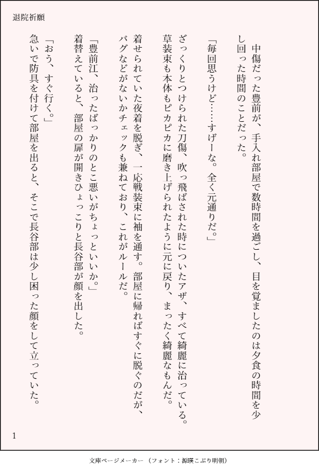 まあ、僕も豊前のかいた胡坐の膝に、頭を乗せようとしているわけだし、僕たちが恋人同士だということを知らない男士はこの本丸にはいないわけだし、日常の後継だといわれればその通りなのだが……。