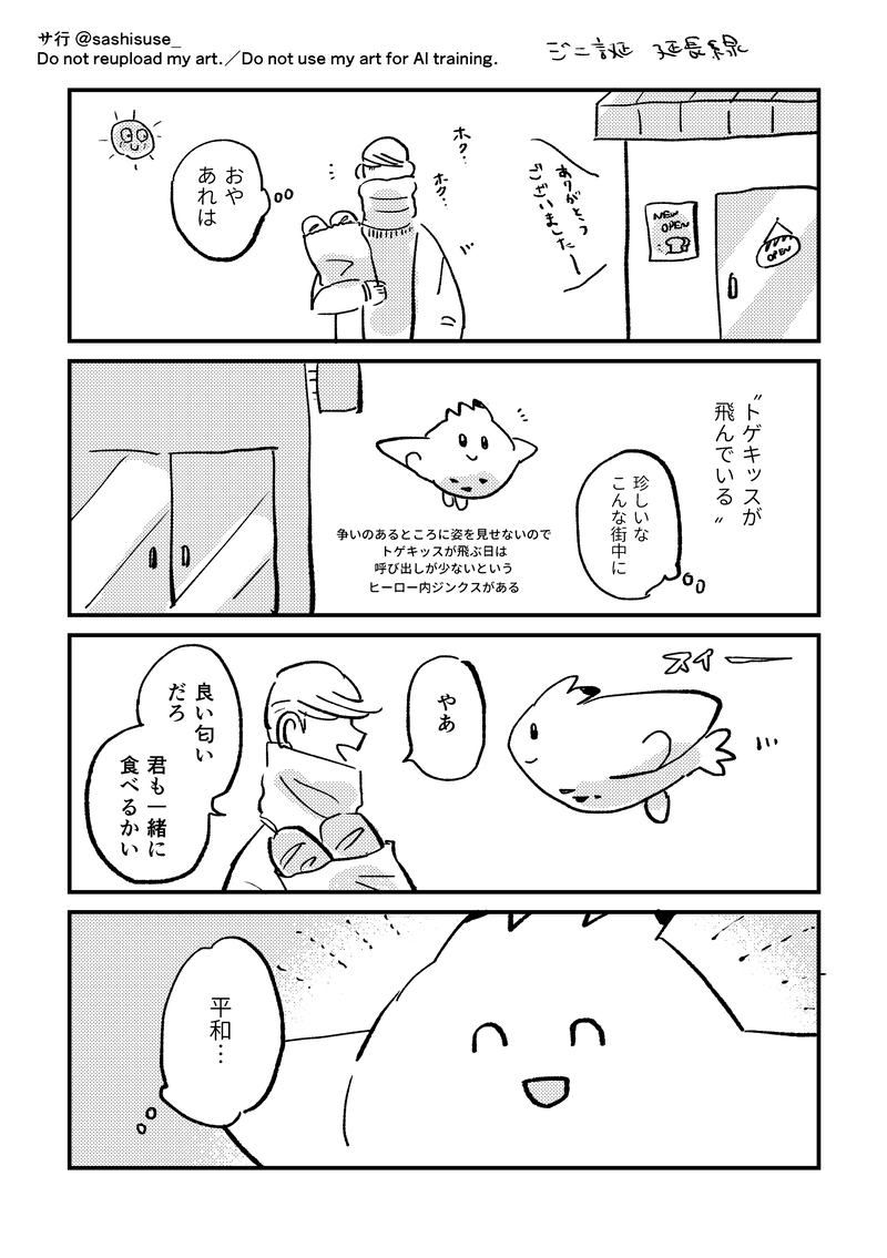sashisuse_☆quiet followDOODLEジニ誕のおまけパン屋さんの帰りにトゲキッ…と遭遇するジニさんの話です※pk…nとのクロスオーバーです 当たり前のようにいます show all(+1 images) Tap to full screen (size:1748x2481).Repost is prohibited Let's send reactions! freqpopularsnackothersPayment processing Replies from the creator Follow creator you care about!☆quiet follow sashisuse_DOODLEジニ誕のおまけパン屋さんの帰りにトゲキッ…と遭遇するジニさんの話です※pk…nとのクロスオーバーです 当たり前のようにいます 2 sashisuse_DOODLEジニさんお誕生日おめでとう これからも笑っていてねカップリングのお話ではありませんが世界と愛し合っています 5 sashisuse_DOODLE大人になったジニ爆がピロートークしてるだけ 2 sashisuse_DOODLEその後お付き合いに至ったジニさんとかつきくんのSUPER SUMMER 2 sashisuse_DOODLEまだお付き合いに至っていないジニさんとかつきくんの夏 どす恋※普通に英語の綴りを間違えていることに気が付きました 次は間違えない 学び…… 2 sashisuse_DOODLEラスト・チームアップ/ファースト・チームアップ 2 recommended works loremiyuDOODLE映画見たその日にこんなもんロマンティクスしとるやろがい!!!!で妄想したんだけど、小説やら監督発言やらでいややっぱロマンティクスしてなくない?????ってなって没にしたんだけどこういうやりとりしてほしかったので書きました あきらDOODLE下書きキュアワンダフル Salmo_NegitoroMEMO2024.11.3-12.11 町葬屋怪異譚-花暦 5 place_rimDONE午前6時のブルーアワー煉炭「酔いどれ煉獄さんと」8ページ漫画。中味ない、やまなしおちなし、フワッと読んでいただけたら!パスワードは、CPの英文字四文字です!(イベント時から変更) 8 もゆけPASTドトラン お試しの初恋(https://www.pixiv.net/novel/show.php?id=23330828)後日談。以前ネップリ登録していたものの全文です。 3662 森野クマ3DONE土地神様が村人を人質に取られ抵抗できず鬼に監禁供給簡単なあらすじ(ちょっと長い)柏狐の土地神は代々、子供が幼いころに母から授乳するのと一緒に強い霊力を少しづつ分け与えてきた一族。それを偶然知った鬼はまだその強い霊力を使いこなせない今の当主ここねを狙いその霊力を奪おうとする話 3 sktr_trpgMEMOエモクロアTRPG『1072』DL:さこPC:寄藤あかり(繭山さん)シナリオクリア🌟近所の仲良しお姉ちゃん!おしゃべり楽しすぎて止まらなかった〜。互いの良さで補い合う姉妹のような関係☺️親たちの関係性も気になる。。素敵なひと時をありがとうございました🙌 CELIDONE2022年10月発行した同人誌『陽鏡炎写』に収録してある作品です。話自体は既にpixivで公開していましたが、書き下ろし作品である続編『Daybreak Frontline2』公開に伴いこちらの作品も挿絵付きで公開する事にしました。 *** 挿絵は2022年にカエルさん(https://poipiku.com/724272/)に描いて頂いたものです。 15 FeTRPG1MOURNING捨てKPCリザルト
