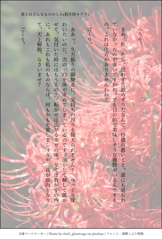 愛とはどんなものかしら(殺生院キアラ)