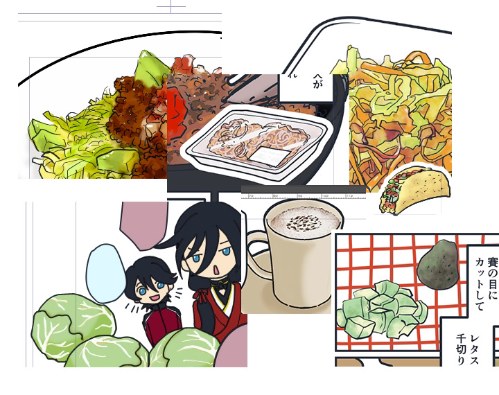 撮影して写真を加工してるゴハン絵と、手で描き描きするゴハンの差が出ないようにしたいけどもなー。