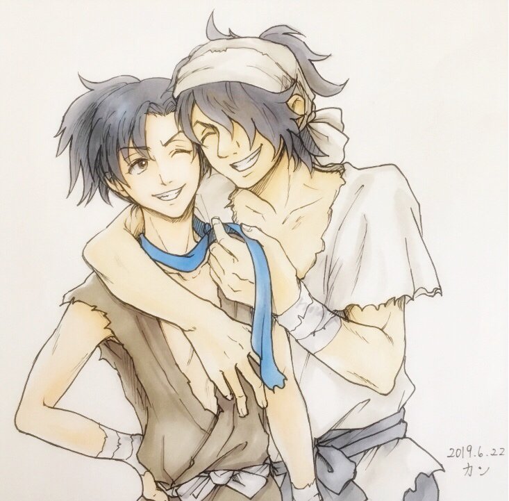 どろろの村人三人組で、次平太がいちばん年下に見えるので、他の二人に弟みたいに構われてたらいいなと思った妄想の図。