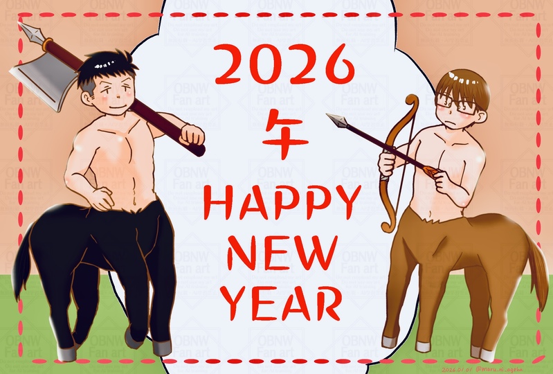 2026初描き。午年なのでサジタリウス🌸🔥