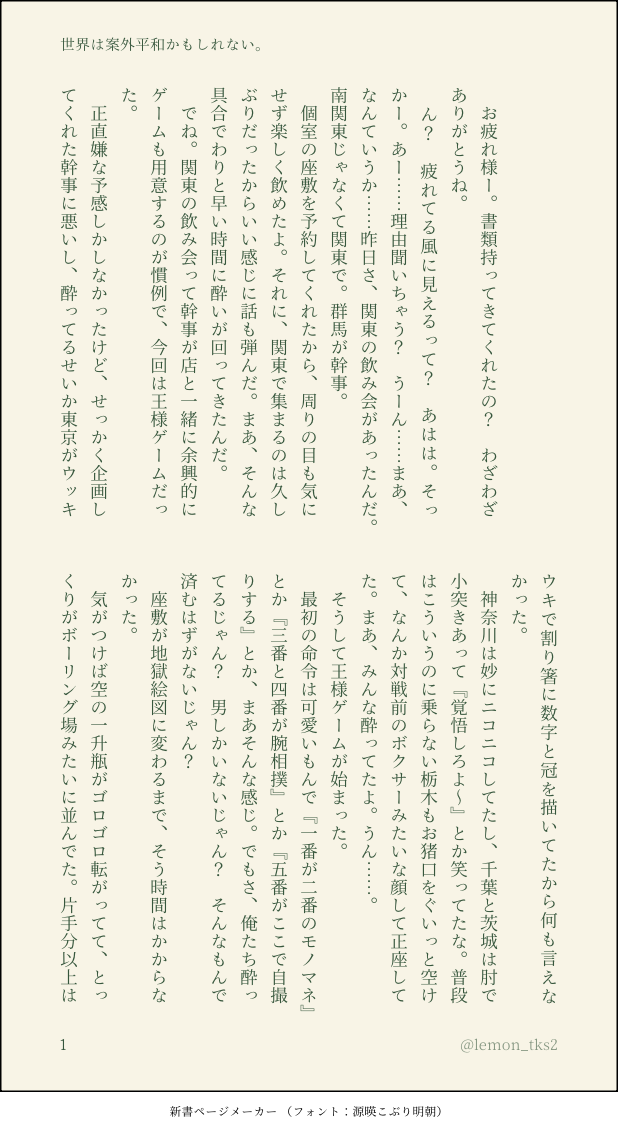 神東と関東。飲み会。事故。王様ゲーム。