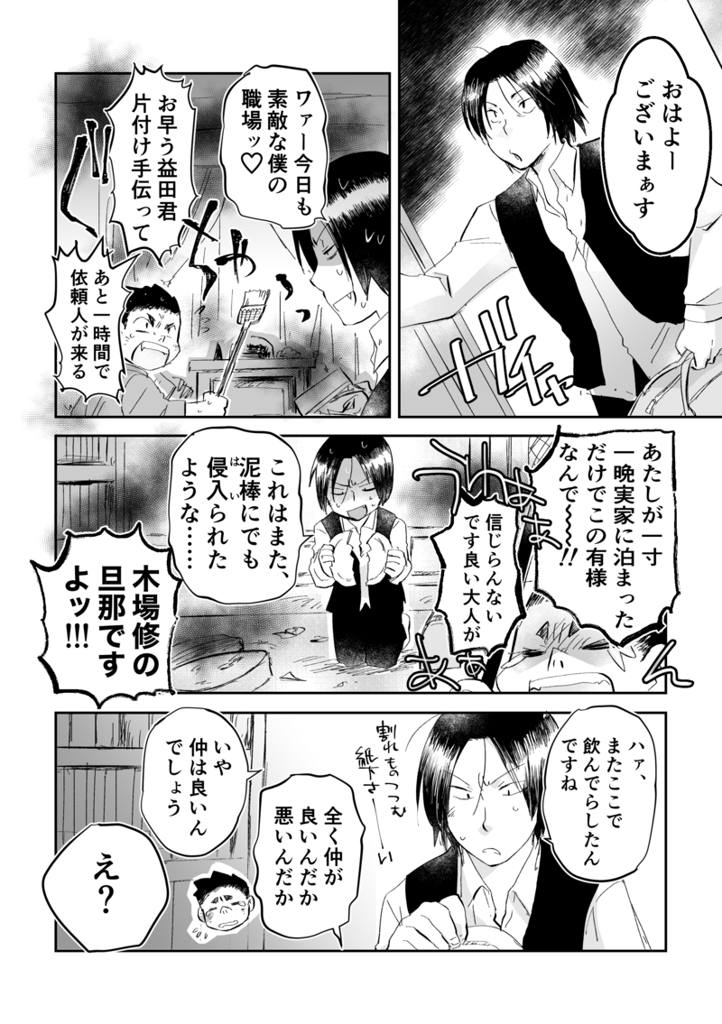 内蔵太☆quiet followDONEリクエスト3件目「「あれはあれで結構照れ屋」な榎木津!!!!!」あの照れ屋要素をどう活かしたら良いのか悩んで結局こんなことに……。主題からだいぶ外れてしまった気がする。益田君にはパワハラ働きつつ親分気取りの榎木津が好きです☺️ありがとうございました!! #榎木場 show all(+1 images) Tap to full screen (size:2039x2894).Repost is prohibited Let's send reactions! freqpopularsnackothersPayment processing Replies from the creator Follow creator you care about!☆quiet follow 内蔵太DONE🐘つき敦子ちゃん絵できた満足したらtntn消えるかもという仮説を立てて、三人をちぎっては投げちぎっては投げってしてほしい。こういう時の推理大体外れちゃう敦子ちゃん…… 2 内蔵太DOODLE妻に憑いたチンチンデビルを落とすため頑張ってくれる愛妻家フィニッシュの時「鎮ッ!」って音がどこからともなくするとかしないとかーー 2 内蔵太DOODLEにょっきり生えている千鶴子さん描いてみたくて……ゆりゆりしててもいいし亭主とイチャイチャしていただいてもいい 内蔵太DONE榎木場本とりあえずちゃんと出そうなのでサンプル出します〜前回の本が鮮やかで気に入ったので、今回も表紙6色印刷にしました。18禁だってわかりづらい絵なので表裏に成年向けマーク入れました。『中禅寺先生』時空ですよ、バンドも書いたよ!!pixivに載せた漫画の再録も併せて4本だて44Pです。この後に及んでおまけなんかつけられないかなと思っているので、ピクシブのサンプルはそれ終わってから。 6 内蔵太PROGRESSおはよう榎木場本進捗毛を植えています。やっぱ神は陰毛の生え方も違うかなと思って、種類を変えたりしてみました。えのの方が真っ直ぐ気味なんですが、ほら楊貴妃とか陰毛がまっすぐで足首まで伸びてたからフェロモンが放出されてすごかったっていうしな 2 内蔵太PROGRESSおはよう榎木場本進捗こないだTLで教えてもらった毛ブラシと、細くした筆ペン使って毛を生やしました related works ココノカSPOILER幻覚なので全くネタバレではないけど1072話の発言ネタ 2watoyoDOODLE【朝のボールペン落書き】【日楠♀】【先天性女体化】日高先輩×男装後輩サキュバス家系楠ちゃん。海編。本当に気にしてるのは。 nnnnnnoodderaDONE【腐向け】チャバが酔ってハ崎さんに甘えてる漫画。ハ崎さんがトイレに行くのを我慢していたりする。 4 きくちゃんDOODLEサタン様犬好きかと思いきやロクサーンみたいなパターンもあるのでやっぱ人外思考なのかな~ べこDOODLEピンク色のバレンタインなヨウグズ🍫 ちゃづDONE描いたやつその1※茨あん、ジュンあん 17 ちゃづDONE描いたやつその1※茨あん、ジュンあん 17 わたさくDOODLE きくちゃんDOODLEサタン様犬好きかと思いきやロクサーンみたいなパターンもあるのでやっぱ人外思考なのかな~ recommended works 内蔵太MEMO中表紙用下書き(今後どうなるかは知らない)この対称ぶりが堪らんのだなぁー、なおかつバリバリのパワー系なところ……元はミステリ小説だって話しましたっけ?文字なぐり書きですいません 内蔵太DOODLEやることは色々あるんだけどどうしても我慢出来なかった……Twitterで拾った素材。二枚組。 2 shitake_havenDONE応援ありがとー!(チャー研)中禅寺先生 うまいことまとめらんなかったや 内蔵太MAIKING資料集めつつ榎木場戦後編。楽しいシーン1Pに凝縮したくてこういうふうにしたけど、詰めすぎか。この内容でもう少し伸ばしても良い気がするので悩み中。 内蔵太PROGRESS近親憎悪と河原崎君9〜12ページこれで終わりです〜薔薇十字団に対して木場シュウの嫉妬心みたいなのがチラチラ見えるのすごい好きなんですよ、幻覚かもしれないあと他にも大事なものがある人が好きなんですよ、嫉妬するけど。めんどくさいよね!!(好きです 4 内蔵太PROGRESS裏表紙できた!!!表紙はこれから塗り込みます引っ越しの荷物もだいぶ片付いてきました本棚に本が収まるとようやく日常が戻ってきたなって感じするけど、全部本棚入るのかなコレ……あと買い貯めた同人誌と在庫入れるケースがまだ無いので買おうと思った。今まで段ボールに放り込んでたんだけど、段ボールからものを出して入れ替える生活をしてる流れで何とか革新したい KazemachiDOODLE地獄組には手を出すな!(え~ぞ~けんOPパロ)合理性と現実主義のknmrせんく~ちゃんと、天然努力家良い子なmzskくよむがハマってる気がして気付いたら描いてました…knmrせんく~ちゃんに進捗管理されたい。 内蔵太DONEエロ漫画描かなきゃなんだけど間に合うのかな榎木場と青木場をぶつけた場合を悶々と考えてしまうけど、結局大コマでなんか叱って終わってしまうんだ……でも榎木津が叱るところ好きなんですよこの路線で行くと結局3○で手打ちにするしかないんだけど……数ヶ月前にも私たちそんな話してましたよねって話をけだまさんと話してた気がする 内蔵太DONE海の竹馬差分何日かけて塗ってんだ…… 2
