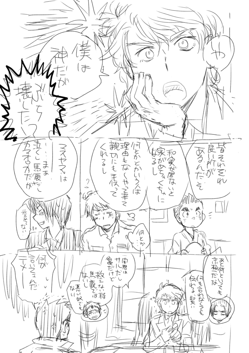 内蔵太☆quiet followPROGRESS近親憎悪と河原崎君7枚目と8枚目 多分次で終わります #河原崎 kawarazaki #榎木場 #近親憎悪と犬 inbreedingAndDogs show all(+1 images) Tap to full screen (size:1165x1654).Repost is prohibited Let's send reactions! freqpopularsnackothersPayment processing Replies from the creator Follow creator you care about!☆quiet follow 内蔵太DONE榎木場本とりあえずちゃんと出そうなのでサンプル出します〜前回の本が鮮やかで気に入ったので、今回も表紙6色印刷にしました。18禁だってわかりづらい絵なので表裏に成年向けマーク入れました。『中禅寺先生』時空ですよ、バンドも書いたよ!!pixivに載せた漫画の再録も併せて4本だて44Pです。この後に及んでおまけなんかつけられないかなと思っているので、ピクシブのサンプルはそれ終わってから。 6 内蔵太PROGRESSおはよう榎木場本進捗毛を植えています。やっぱ神は陰毛の生え方も違うかなと思って、種類を変えたりしてみました。えのの方が真っ直ぐ気味なんですが、ほら楊貴妃とか陰毛がまっすぐで足首まで伸びてたからフェロモンが放出されてすごかったっていうしな 2 内蔵太PROGRESSおはよう榎木場本進捗こないだTLで教えてもらった毛ブラシと、細くした筆ペン使って毛を生やしました 内蔵太PROGRESS榎木場本進捗。下書き終わりましたやったね2枚目難しすぎでウンウン言ってたやつです。セクシーに仕上げたい36Pか40Pの本にしたいです。出るイベント決まってる本出すの久々だからちゃんと終わるか心配 3 内蔵太PROGRESS榎木場本進捗だよ、もう表出せなくなった2枚目以降普通に成人向けですー下着着せたままにするか悩んでる 3 内蔵太DONE春の百鬼どすけべウィーク最終日です朝っぱらからマッパ。さわやか後朝で締めたかった!! 尻描きたかった!!!榎って服探して全裸で部屋歩き回ってそうだよね。自信がある春です、お誕生日おめでとう私 related works 内蔵太PROGRESS近親憎悪と河原崎君9〜12ページこれで終わりです〜薔薇十字団に対して木場シュウの嫉妬心みたいなのがチラチラ見えるのすごい好きなんですよ、幻覚かもしれないあと他にも大事なものがある人が好きなんですよ、嫉妬するけど。めんどくさいよね!!(好きです 4 内蔵太PROGRESS近親憎悪と河原崎君7枚目と8枚目 多分次で終わります 2 内蔵太PROGRESS同族嫌悪っていうか近親憎悪だな河原崎君5枚目と6枚目まだ続くよ!!! 2 内蔵太PROGRESS同族嫌悪と河原崎くん3枚目と4枚目まだ続きます練乳回と違い違いでのっけることにしてしまってすみません練乳回はアンソロ用にしようかな(18禁決定の瞬間) 2 内蔵太PROGRESS同族嫌悪漫画描き始めてしまった。勢い重視なので字が恐ろしく汚い。下書き冒頭2Pできた。休むとか言ってませんでした?(自分へ) 2 recommended works 内蔵太MAIKING木場を描かない榎木場四十八手マンガ8枚目と9枚目 完結 描いたはいいけどこれどうするの なんかこれいつまでも描けそうだな 実家に連れて行くという手もあるけどそんな大事件私の手には余ります(?) 2 内蔵太DOODLEやることは色々あるんだけどどうしても我慢出来なかった……Twitterで拾った素材。二枚組。 2 内蔵太PROGRESSポイピク久しぶり!!!下書きあと3、4枚?くらい……。開き直って書きたいコマから書き始めたらテンポが良くなったけど代わりに進捗はわかりづらくなった陰間に迫られた話、もっと詳しく聞きたいんですけど!? 内蔵太DONETwitterでやってた「8RTされたら、「どうしてこいつらこんな無自覚なの?バカなの?」という台詞を使ったエノキバ1コマ漫画を描きます。」という診断メーカーのやつを描きました。人形面は普通にそうだと思うし常にこういうふうに見える 内蔵太PROGRESS近親憎悪と河原崎君9〜12ページこれで終わりです〜薔薇十字団に対して木場シュウの嫉妬心みたいなのがチラチラ見えるのすごい好きなんですよ、幻覚かもしれないあと他にも大事なものがある人が好きなんですよ、嫉妬するけど。めんどくさいよね!!(好きです 4 内蔵太DOODLE誰にでもない自分に媚びる・視力がそんなに良くないので特に幼少期はやたらベタベタ触ってくる人という自分設定・最初のうちこども榎はこども木場のことをちょっと出来る家臣くらいにしか思ってないけど、こども木場にとってはこんな可愛くてきれいなもの初めて見たみたいな存在であってほしい・だんだん「大したやつだけどすごいバカ」とか「顔は綺麗だがすごいバカ」とか平準化されてったら良いですね!!! 内蔵太PASTGWだよ榎木場再放送3日目二冊目の本の口絵(中表紙)と、おまけ漫画。(おまけは前ここに投げた気がする)口絵はネオンピンクで刷って楽しかった思い出 2 内蔵太PROGRESS気に入ってるけどそうそう横顔表紙ばかり描くわけにもいかないので見開きで入れてもらうことになった 内蔵太DONE海の竹馬差分何日かけて塗ってんだ…… 2