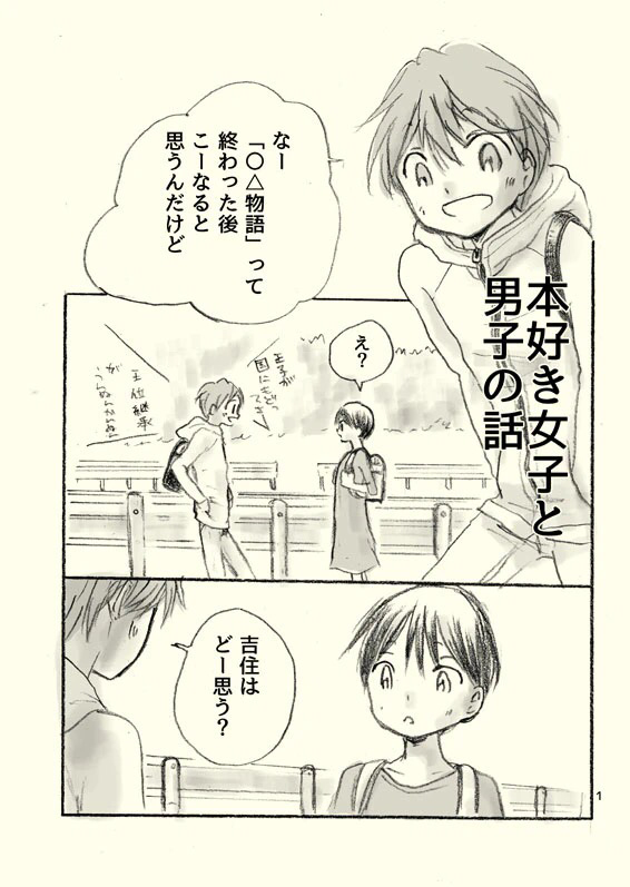 以前描いた漫画です。引越してきた女の子が本を通じて男子と仲良くなる話です。