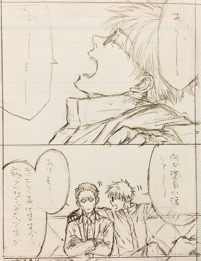yuuki_1132☆quiet followMOURNING「少女漫画風味の七五漫画」の下描きとラフ。ペン入れ前がお顔可愛い率が高い。(誤った原稿用紙の使い方をしています) #七五 seventy-five show all(+28 images) Tap to full screen (size:790x1024).Repost is prohibited Let's send reactions! freqpopularsnackothersPayment processing Replies from the creator Follow creator you care about!☆quiet follow yuuki_1132PAST2023年春〜の絵(企画告知含む)⭐️2024.12~2025.7の絵を追加。一枚だけ上半身のみの行為中の絵あり。 27 yuuki_1132PROGRESS⭐️18歳以上(高卒相当)の方のみ。18 years of age or older (equivalent to a high school graduate)⭐️yes/no七誕の話(2年目)の続き。前回→https://poipiku.com/472572/9013476.html下描き+トーン。2025.7.20 1頁追加。 9 yuuki_1132MEMOただのメモ(ほぼ会話)。心情描写とかは無い。【三暮小話】昼休み・屋上 木暮と赤木は普段一緒に昼を食べているが赤木が委員会で別行動。三井は普段徳男と一緒だが徳男(たち)は食当たりで休み。 一人で弁当を食べようとしている木暮に気付き、「一緒に食わねえ?」と声をかける三井。 屋上の開けたところとは逆サイド(出入り口の反対側、普段は三井と徳男(たち)が使っているので、他の生徒はほぼ来ない)で昼を食べる二人。 食べ終えて話をしている時、木暮の髪に小さい枯葉くずが付いているのに気付く。 取ってやろうと手を伸ばし、ついでに(何故かついでに)耳を触る。ビクリと肩が跳ねる木暮。 「何っ…?」 「いや別に、なんとなく」 「なんだよ、なんとなくって…」 「んー」(耳を触り続ける三井) 「やめろよー」 3278 yuuki_1132MAIKINGお風呂漫画(https://poipiku.com/472572/9135790.html)の別ver.18歳以上の方のみご覧ください。(y/n) 5 yuuki_1132DONE15歳以上ですか?(y/n)※R18漫画のR15編集ver.です。 3 yuuki_1132MEMOSさんの⚯くん関連ツイの『…自分にも垂れてるイメージ…』の誤字(正:持たれてる)を見た時に脳裏をよぎった趣味の絵です。2023.8.14 コマ追加して清書しました。18歳以上(y/n) 3 related works MinimumBraincelDOODLER🔞 priest Nanami and Demon Nanami spit roasting Demon Gojo ミズチ🍑🦋MAIKING2024/03/07ひらぶ用になにかーー!!と思ってかきはじめたやつです😇めちゃくちゃ途中ですが支部にあげたこれ⬇︎の初夜のはなし。https://www.pixiv.net/novel/show.php?id=21561738テーマは年下ワンコと♡喘ぎ(初挑戦)です笑笑2/28くらい〜3/7 1658 ぐ@pn5xcDONE高専内でのハロウィンパーティ。七海と五条がひと悶着。さて、どうなるでしょう🎃(付き合ってる七五です)2023.10月 75ハピハロウィンHappy Halloween「ハッピーハロウィ――ン!」 高専内、五条悟の執務室を開けた七海建人はしばし固まった。そのまま踵を返したい気持ちになったがかろうじて堪え、パタリと後ろ手にドアを閉めた。 「何て格好をしてるんです」 目の前には五条が、超のつくミニスカートを履いた五条悟が、艶然と?立っていた。 一〇月三十一日、ここ呪術高専東京校では夕食の時間にハロウィンパーティをすることになっていた。といっても、会場である食堂を多少飾り付け、ハロウィンに因んだ料理やスイーツが並ぶというささやかな催しであったのだが。 「せっかくだから仮装しようよ」 五条が言い出し、食堂が開くまでの時間、生徒たちは大人たちの元を回ることになった。 「ちゃんとトリック オア トリーツって言ってね。お菓子くれなきゃ悪戯していいから。伊地知のメガネ取っちゃったり、七海のサングラス取っちゃったり、学長のグラサンも取っちゃっていいから」 2660 ruc0iDOODLEややえっちなやつ詰め。 7 yuuki_1132MOURNING「少女漫画風味の七五漫画」の下描きとラフ。ペン入れ前がお顔可愛い率が高い。(誤った原稿用紙の使い方をしています) 29 yuuki_1132DONE少女漫画風味の七五漫画(つきあってない)。【パターンB】未遂でないver.※ 7️⃣出戻りちょっと後くらいで、任務後にお迎えを待っています。※Aの方にはオマケ漫画ついてます。https://poipiku.com/472572/4751742.html 22 st0v0CAN’T MAKE3Pしないと出られない部屋の七五と伊地五?伊五?ですかきかけなのでこれからってところで終わる 2768 さかばるTRAINING七五が成立している祓ったれ本舗のチャンネルに野薔薇ちゃんがゲストとしてきたよ!な話。会話文のみです。「イエーイみんな見てる?祓ったれ本舗のチャンネル祓チューブ!だよ!今回も超絶イケメンGLGのこの僕、五条と」 「相方の五条悟よりモテる方の夏油傑がお送りします。」 「お?開幕早々やんのかこら。」 「やらないよ。早速今日のゲストをお呼びします。」 「無視すんなや。」 「事務所の後輩、人気急上昇中アイドル。釘崎野薔薇です。」 「ほら、この釘崎野薔薇様がきてやったぞ。もてなせ。」 「きゃー野薔薇かっこいいー!何飲む?コーラ?」 「はぁ?ルイボスティー無いの?」 「無い。僕の好みでオレンジジュースとコーラと傑の趣味でほうじ茶といいちこならある」 「おい酒はダメだろ。・・・はぁ、オレンジジュースでいいわ。」 「五条用意してきまーす!傑あとよろしくー」 1171 exc_1219(えー)MOURNING吸死と七五のクロスオーバー。頭の中に話はあるが書き上が