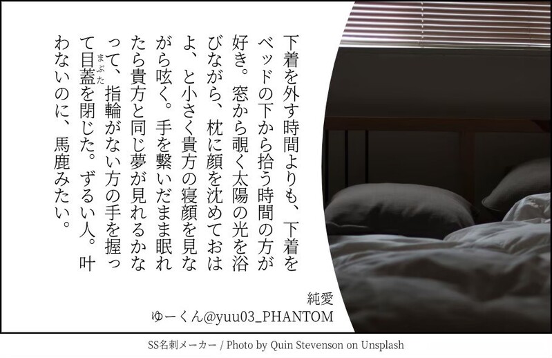 ゆーくん☆quiet followDONETwitterにあげた小説 ##ゆーくんの自己満小説 show all(+6 images) Tap to full screen (size:910x590).Repost is prohibited Let's send reactions! freqpopularsnackothersPayment processing Replies from the creator Follow creator you care about!☆quiet follow ゆーくんDONE #キスシーンを14字で書く 2 ゆーくんDONE久しぶりに。 ゆーくんDONETwitterにあげた小説 7 ゆーくんDONETwitterにあげた小説 ゆーくんDONETwitterにあげた小説