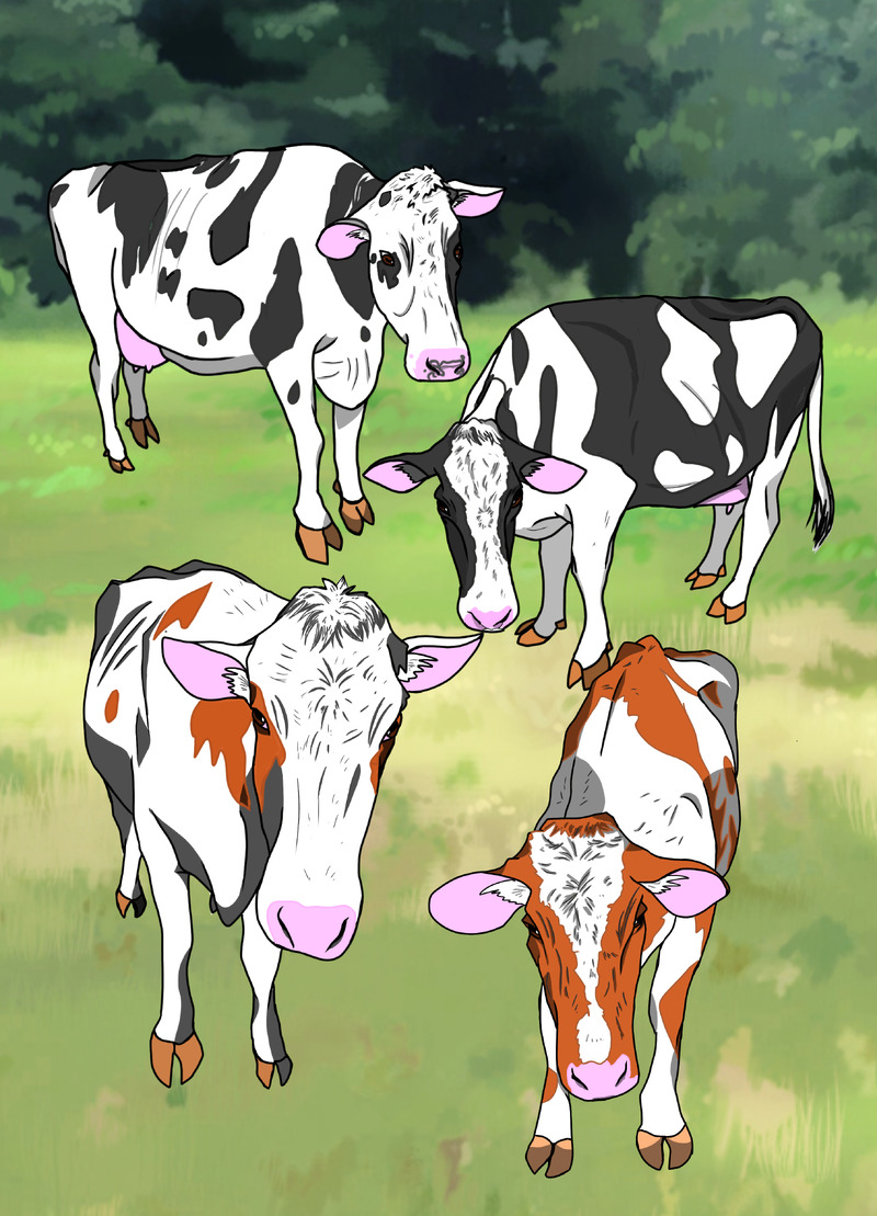 四枚目 牛の髪型にも個性があって、なんかMハゲみたいな子もちょいちょい。ベジータみたいで、覚えやすい。